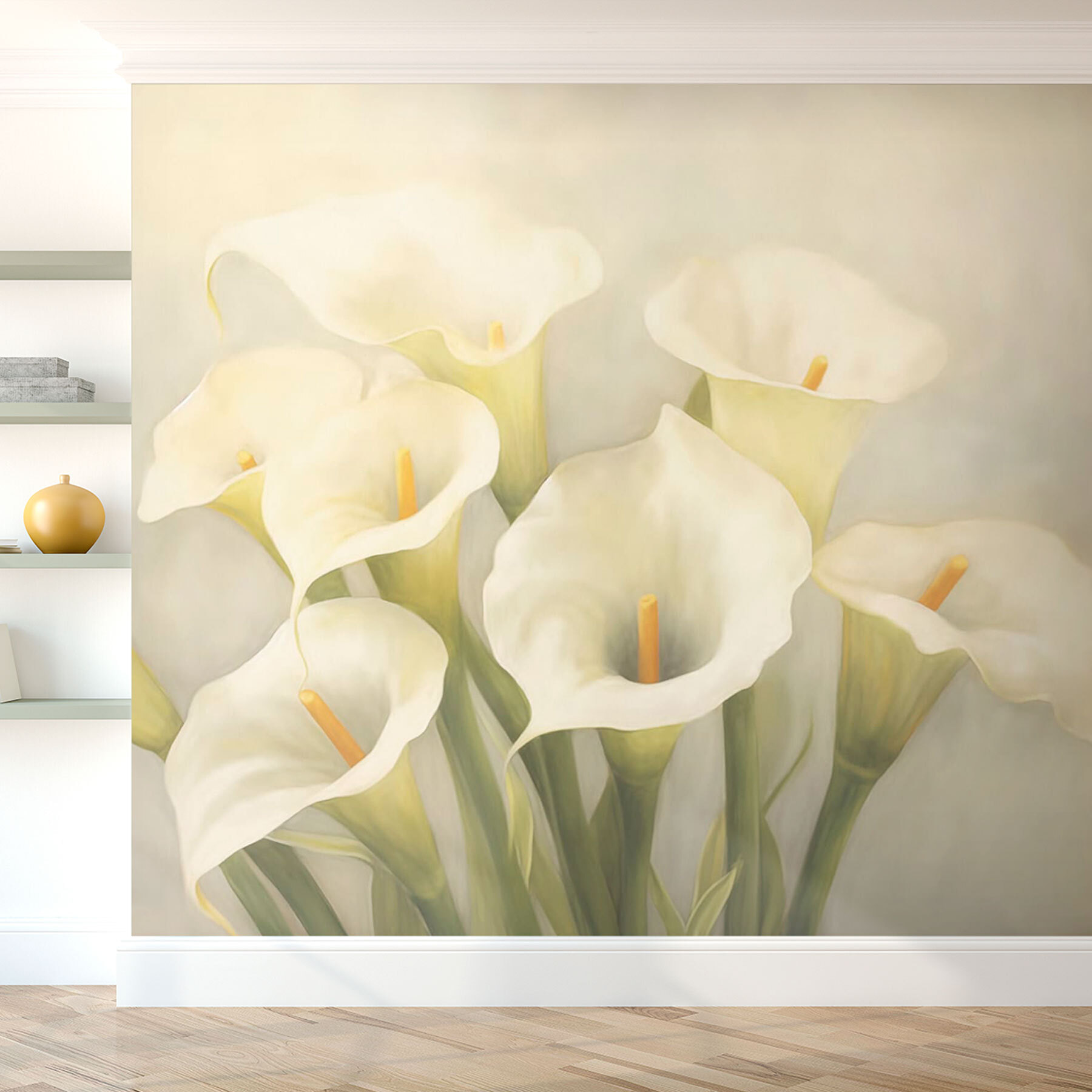 Transform your space with this stunning wall mural featuring a graceful group of white flowers. Imagine walking into a room and being greeted by that soft, serene vibe—like a gentle hug from nature. The delicate petals and soft hues create a calm atmosphere that invites relaxation and reflection.