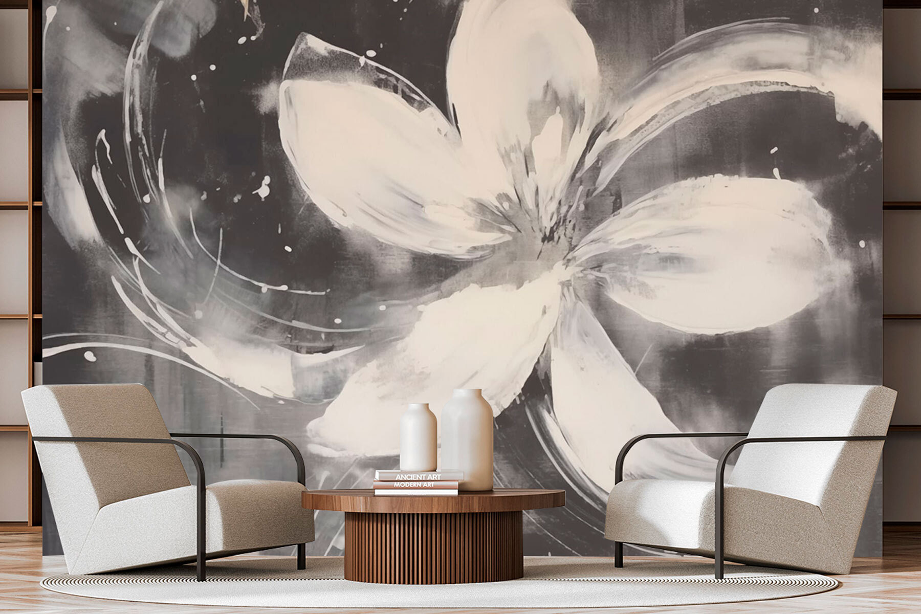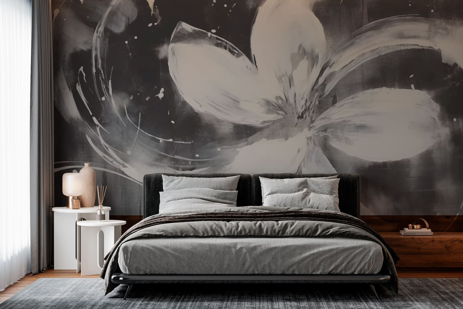 Transform your space with this striking “White Flower on a Black Background” mural. It’s like nature’s pure elegance wrapped in a cozy embrace of watercolor vibes. Imagine stepping into a room where a giant, dreamy flower seems to dance against a backdrop of rich, deep tones. Perched proudly on your wall, it whispers calm and creativity to anyone who glances its way.