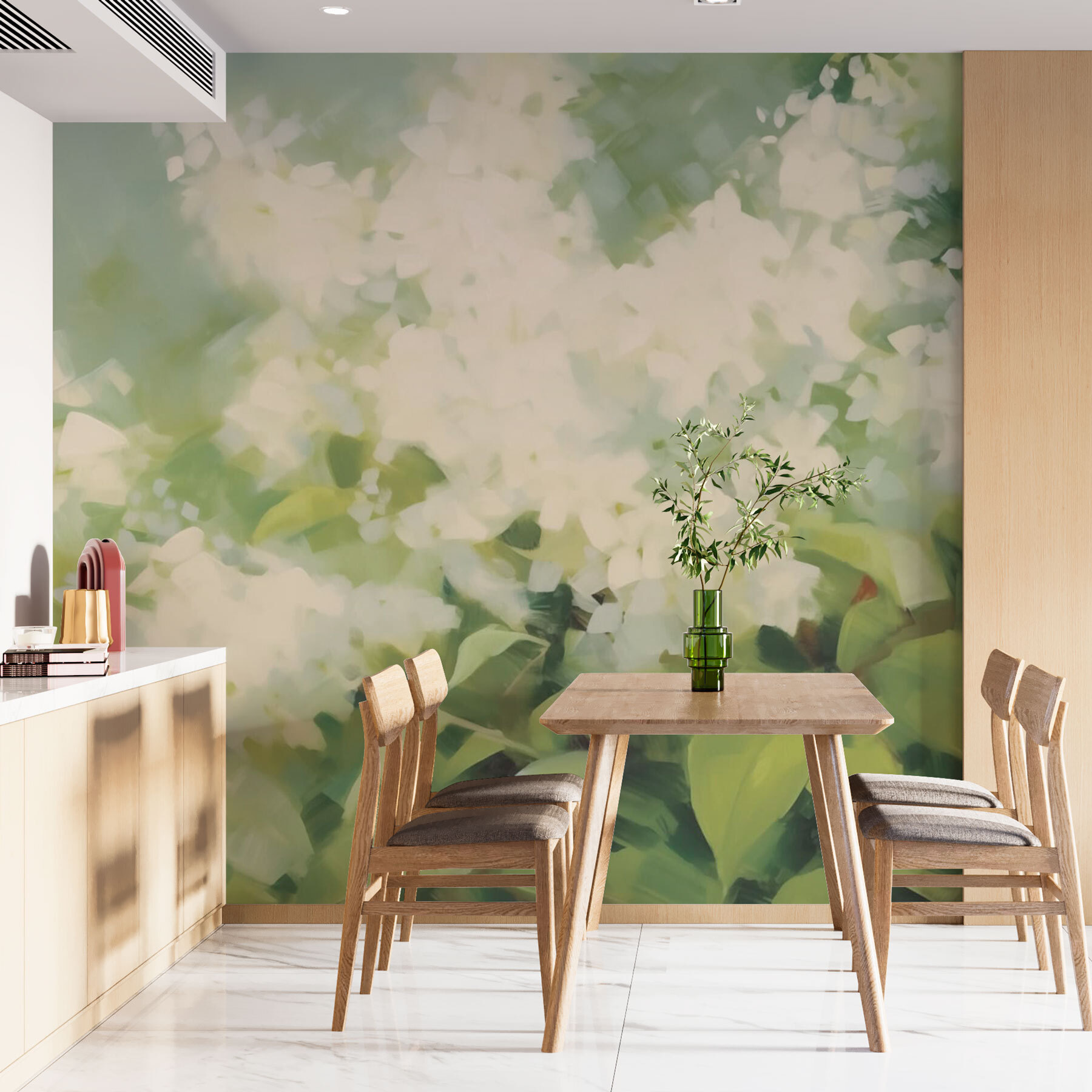 Transform your space with the enchanting “Soft blooms in a gentle breeze” mural. Imagine stepping into a serene garden filled with fluffy white blooms, dancing softly in a warm breeze. It’s like bringing a bit of nature indoors, minus the allergy attacks. Hang it in your living room or bedroom, and watch as it instantly lifts the mood—who wouldn’t feel a little happier surrounded by softness and color? Perfect for coffee breaks or quiet evenings, this mural’s dreamy vibe makes every glance feel like a mini escape. So, breathe in that fresh floral essence—your walls deserve a little love too!