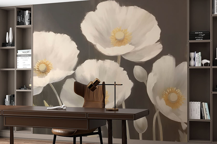 Get ready to bring a touch of nature indoors with this stunning wall mural featuring delicate white flowers. It’s like walking through a serene garden every time you step into the room. The soft, muted tones paired with those cheerful pops of yellow in the center of each flower? Oh, they’re simply delightful! Imagine sipping your morning coffee while basking in the glow of these beauties. It’s not just decor; it’s a conversation starter. Friends will wonder if you hired a painter or if you’ve magically cultivated a flower wall overnight. Perfect for making any space feel calm and inviting!