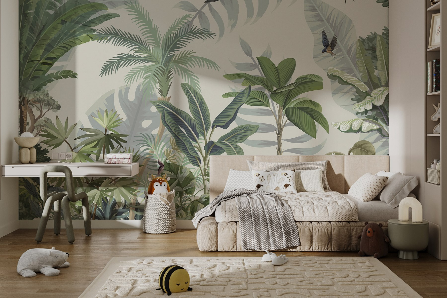 Transform a plain wall into a lush paradise with this tropical mural! Picture vibrant greenery and cheerful birds fluttering about—it’s like bringing a mini rainforest right into your living space. Imagine sipping your morning coffee while this mural transports you to sunlit jungles. The soothing colors and rich details just ooze warmth and relaxation. Plus, it’s a great conversation starter! Whether you’re a nature lover or just need a pop of life in your home, this mural will have everyone feeling a little more adventurous—who knew walls could be this exciting?