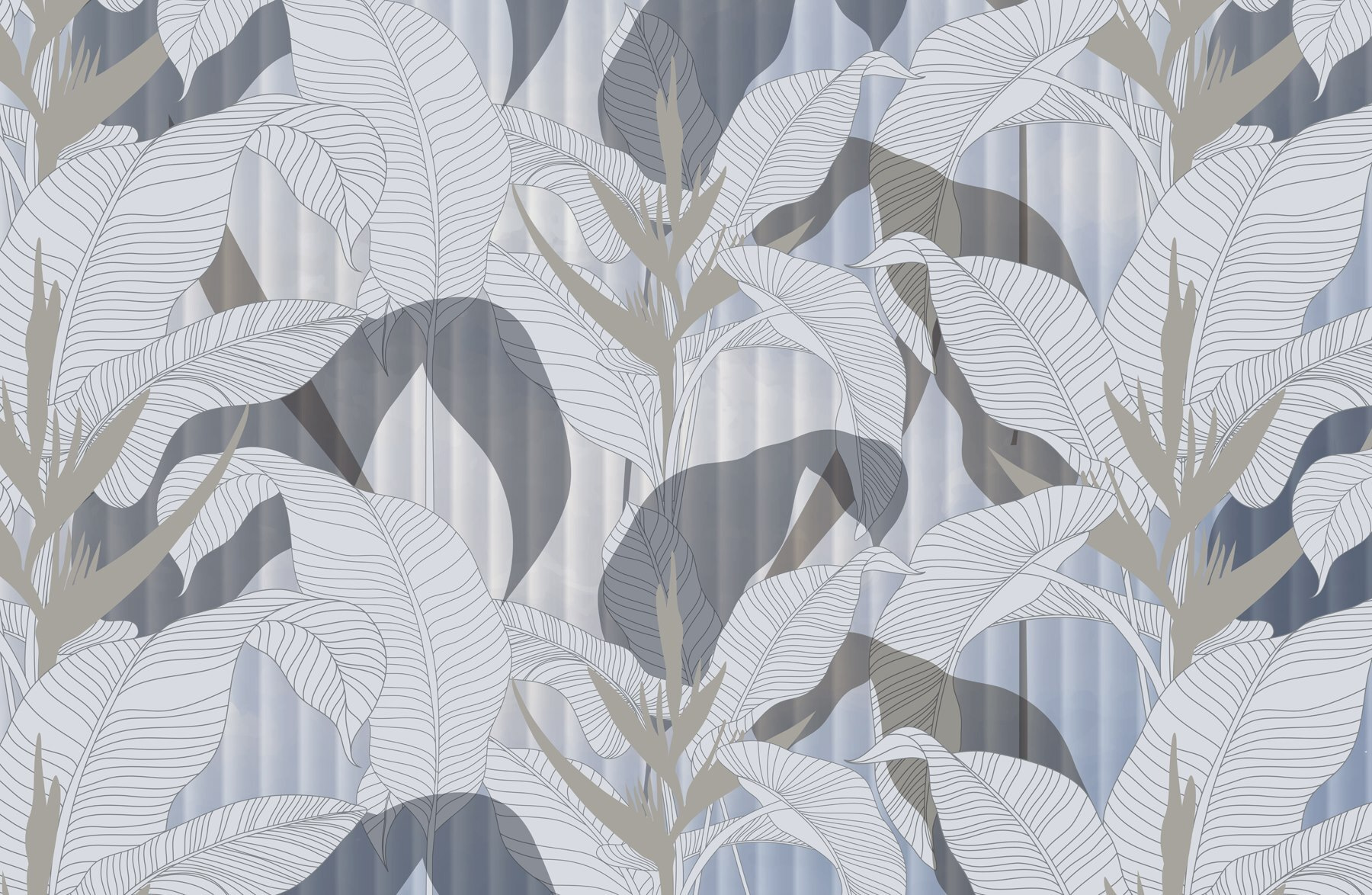 Transform any space into a tropical oasis with this stunning wall mural, featuring an enchanting dance of leaves and flowers. Imagine waking up to this lush backdrop every morning—it’s like bringing a bit of the outdoors right inside. The soothing neutral tones balanced with striking patterns create a vibe that’s both chic and calming. Perfect for that cozy nook or a lively living room, this mural feels like a gentle reminder of nature’s beauty. As the light shifts during the day, these leaves seem to come alive, adding depth and warmth. You might even catch yourself daydreaming of sunlit days spent amidst tropical paradise, right from your own home.