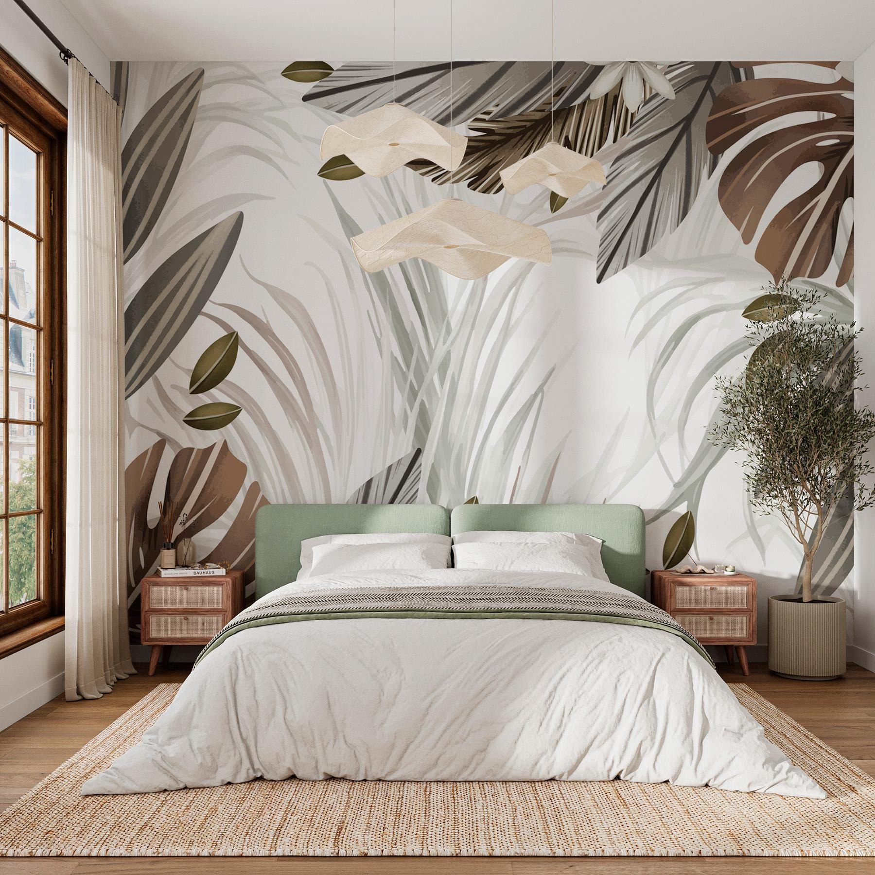 Transform your space with this delightful wall mural, Nature’s Beauty in Soft Hues. It brings a gentle, tropical vibe that whispers relaxation. Imagine sipping a cup of tea while surrounded by lush leaves—each shade subtle yet captivating. Folks might say it feels like a mini getaway right in your living room, perfect for those days when you need a break without leaving your couch. Plus, those playful combinations of greens and browns? It’s like Mother Nature herself helped pick the palette. It’s not just decor; it’s an experience waiting to bloom.