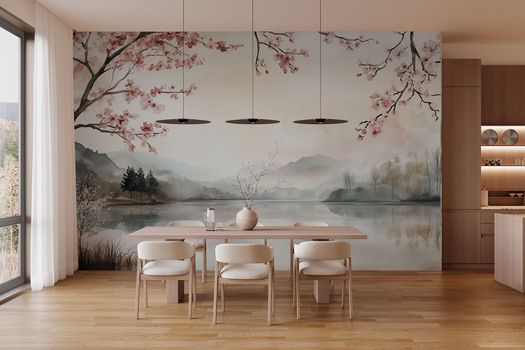 Transform any room into a serene escape with this stunning watercolor mural featuring a tranquil lake, majestic mountains, and delicate trees. It’s like bringing a piece of nature’s artwork right into your home. Just imagine sipping a cup of coffee while gazing at this peaceful scene—the gentle hues wash over you, washing away the day’s stress. Perfect for those who want a dreamy vibe without the hassle of outdoor maintenance. Feel free to daydream and get lost in the landscape. Who knows, it just might inspire a creative spark! Perfect for a cozy nook or a busy living room.