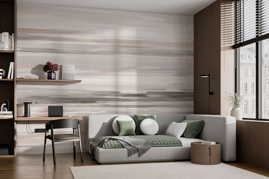 Imagine walking into a room where the walls whisper soft secrets of serenity. This mural, with gentle brush strokes in soft tones, creates a calming atmosphere that feels like a warm hug. It’s like having a piece of a soothing sunset right in your space—perfect for those moments when you need to unwind after a busy day.
