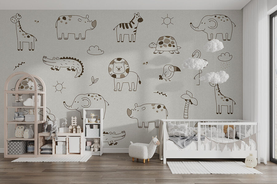 Transforming a room is simple with this delightful wall mural of quirky animals. Picture a playful giraffe, an adorable tortoise, and a smiling lion all hanging out together—no zoo ticket required! This design brings a light-hearted charm, perfect for a child’s room or a cozy corner in a living space. Imagine the smiles and giggles when kids spot their favorite creatures. It’s like a mini safari right at home! Soft colors and whimsical illustrations invite warmth and fun, making any wall feel inviting and lively. Say goodbye to boring walls!