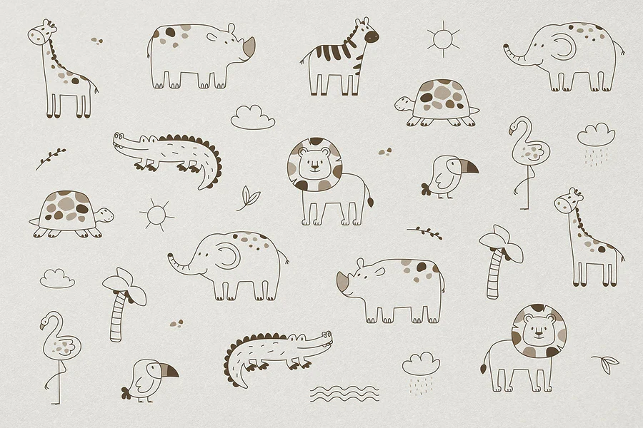 Transforming a room is simple with this delightful wall mural of quirky animals. Picture a playful giraffe, an adorable tortoise, and a smiling lion all hanging out together—no zoo ticket required! This design brings a light-hearted charm, perfect for a child’s room or a cozy corner in a living space. Imagine the smiles and giggles when kids spot their favorite creatures. It’s like a mini safari right at home! Soft colors and whimsical illustrations invite warmth and fun, making any wall feel inviting and lively. Say goodbye to boring walls!