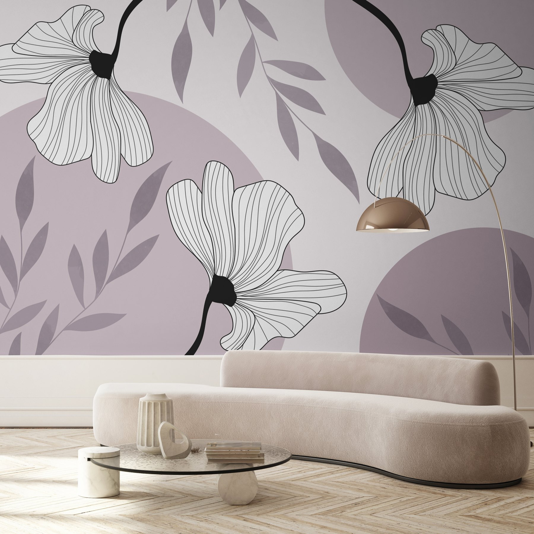 Transform any space with this stunning wall mural featuring an elegant floral design that whispers tranquility. Imagine walking into a room where soft hues of lavender and gentle greens create a soothing backdrop, perfect for a cozy reading nook or a peaceful bedroom retreat. The delicate linework of the flowers adds a touch of whimsy without being overbearing—like a friendly garden coming to life on your wall.