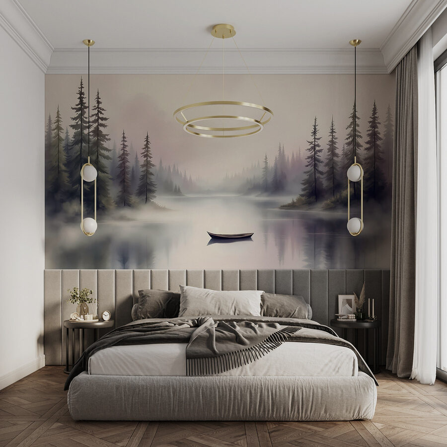 Transform any room with this stunning mural of a boat on a tranquil lake, surrounded by trees that seem to whisper secrets. Picture waking up each morning feeling like you’ve stepped right into a dreamy escape. The gentle hues create a calming vibe, perfect for unwinding after a long day—think cozy blankets, quiet moments, and maybe a hot cup of tea. Friends might even ask if you took a spontaneous trip to the woods. Add a slice of nature to your walls and let the peaceful scenery bring a sense of serenity and warmth to your space. Who wouldn’t want that?