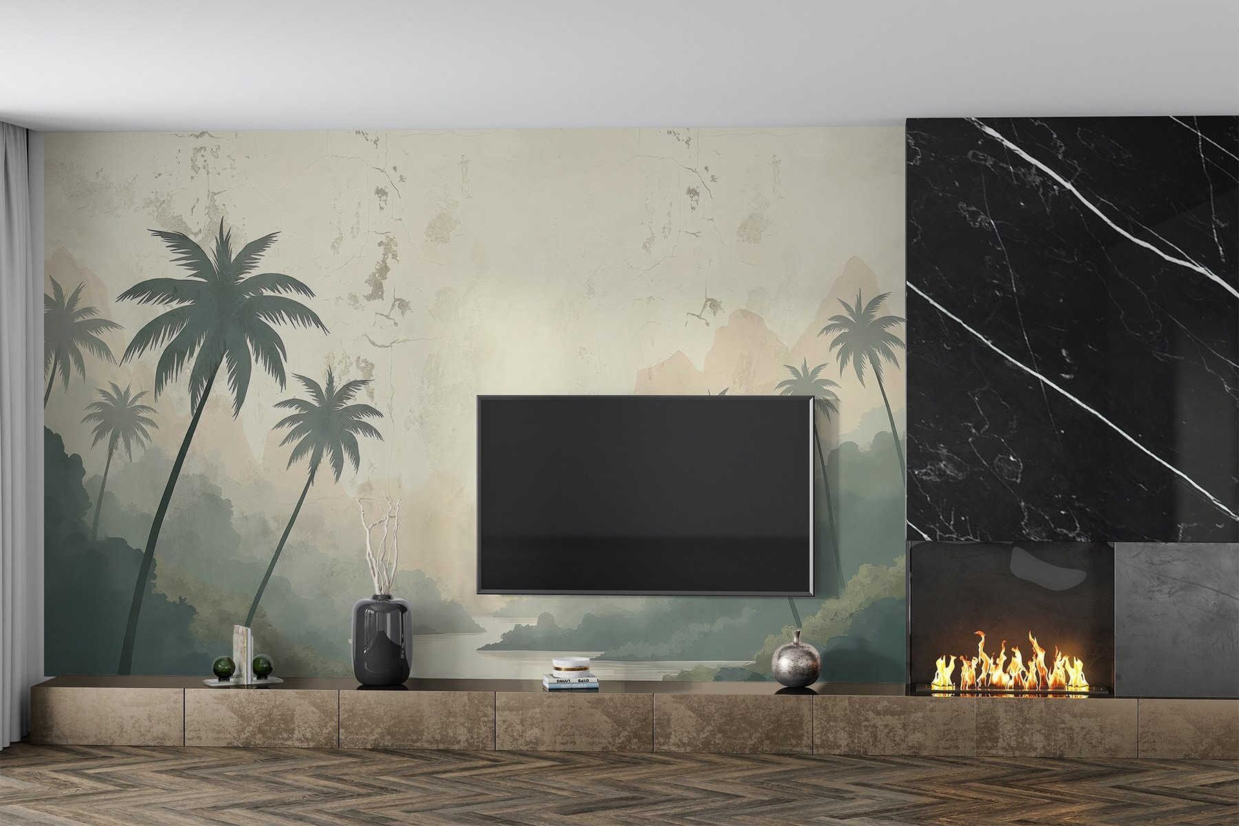 Imagine stepping into a serene escape every time you walk into the room. This mural, with its tranquil river winding through lush greenery and majestic mountains, brings nature right into your space. It’s like having a little piece of paradise on your wall. The soft greens and delicate browns create a calm vibe, perfect for relaxing after a long day. Picture curling up with a good book, the gentle river practically whispering sweet nothings. Whether it’s for your living room or a cozy reading nook, this mural’s got that “wow” factor. Bring the outdoors in and watch how it transforms your home into a peaceful retreat!