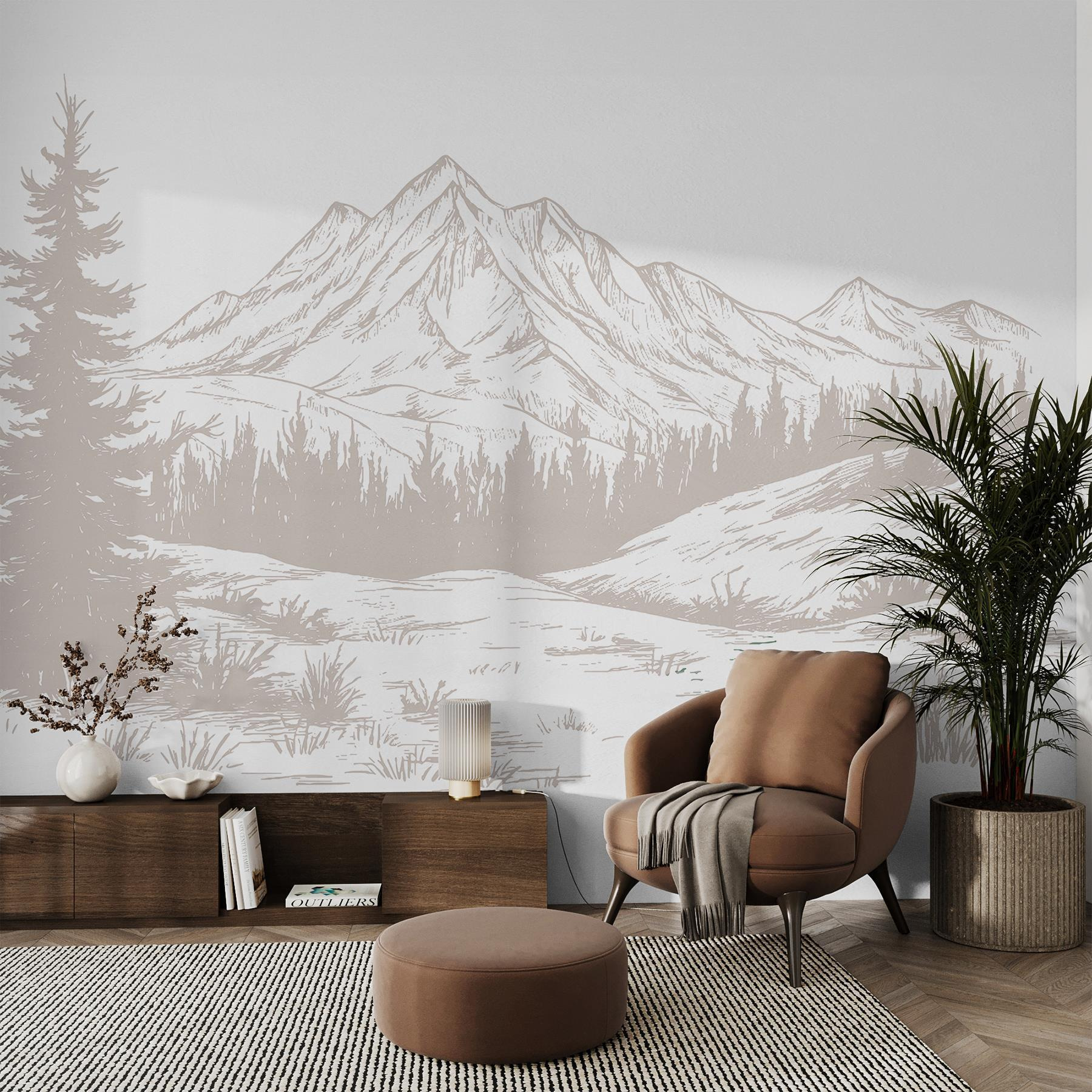 Bring the great outdoors right into your home with this stunning mural of a mountain range. It invites daydreams of weekend hikes and cozy campfires under the stars. The soft lines and earthy tones create a peaceful vibe, perfect for a living room or home office. Just picture sipping coffee while gazing at those majestic peaks—seriously, it can transport you! And the trees? They add that extra touch of nature’s beauty. It’s like having a little slice of the wild, minus the mosquitoes. A great conversation starter, too, for when guests pop by. Transform your walls and let your imagination roam free!