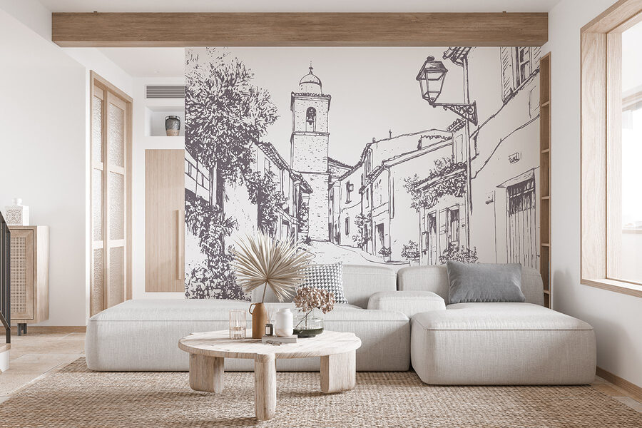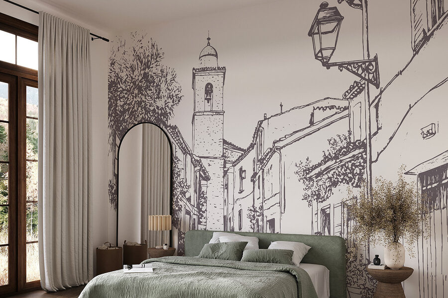 Transform any space into a charming retreat with this delightful wall mural depicting a quaint street lined with charming buildings and a majestic bell tower. Imagine sipping your coffee while gazing at the beautifully sketched architecture that makes you feel like you’ve stepped into a European village. The organic hues and gentle details invite warmth, sparking daydreams of leisurely strolls and leisurely conversations. It’s the kind of mural that makes walls come alive, creating a cozy backdrop for family chats or quiet reading nooks. Perfect for sparking joy and making memories!