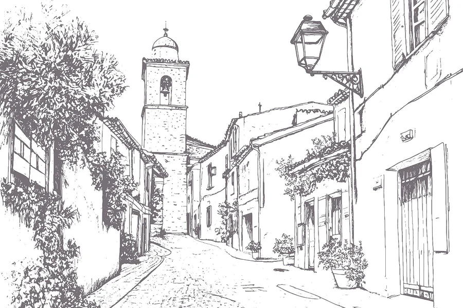 Transform any space into a charming retreat with this delightful wall mural depicting a quaint street lined with charming buildings and a majestic bell tower. Imagine sipping your coffee while gazing at the beautifully sketched architecture that makes you feel like you’ve stepped into a European village. The organic hues and gentle details invite warmth, sparking daydreams of leisurely strolls and leisurely conversations. It’s the kind of mural that makes walls come alive, creating a cozy backdrop for family chats or quiet reading nooks. Perfect for sparking joy and making memories!