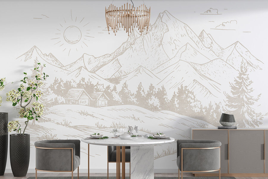 Transform any wall into a serene escape with this mural, featuring a charming landscape of mountains and trees. Imagine waking up to gentle slopes and sunshine peeking through your window, inviting you to start the day. It brings a slice of nature right into your home, making spaces feel more open and breezy. Picture hosting friends for a cozy gathering, everyone admiring the intricate details, creating a conversation starter. Whether it’s a living room or a cozy nook, this mural adds a touch of warmth, reminding you of peaceful hikes and lazy afternoons in the great outdoors. Nature lovers will feel right at home!