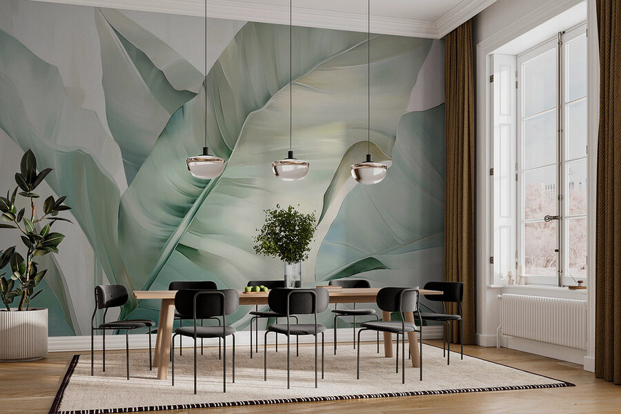 Transform any room into a tropical oasis with this mural featuring soft, lush leaves in dreamy hues. Imagine waking up to this serene sight every morning—it’s like bringing a bit of nature inside without the mud or bugs. Perfect for those who crave a touch of the outdoors, it adds a peaceful vibe to kitchens, living rooms, or even that cozy reading nook. Just picture curling up with a cup of coffee, the gentle greens fluttering in your mind like a warm breeze. It’s all about creating that calming escape, right at home!