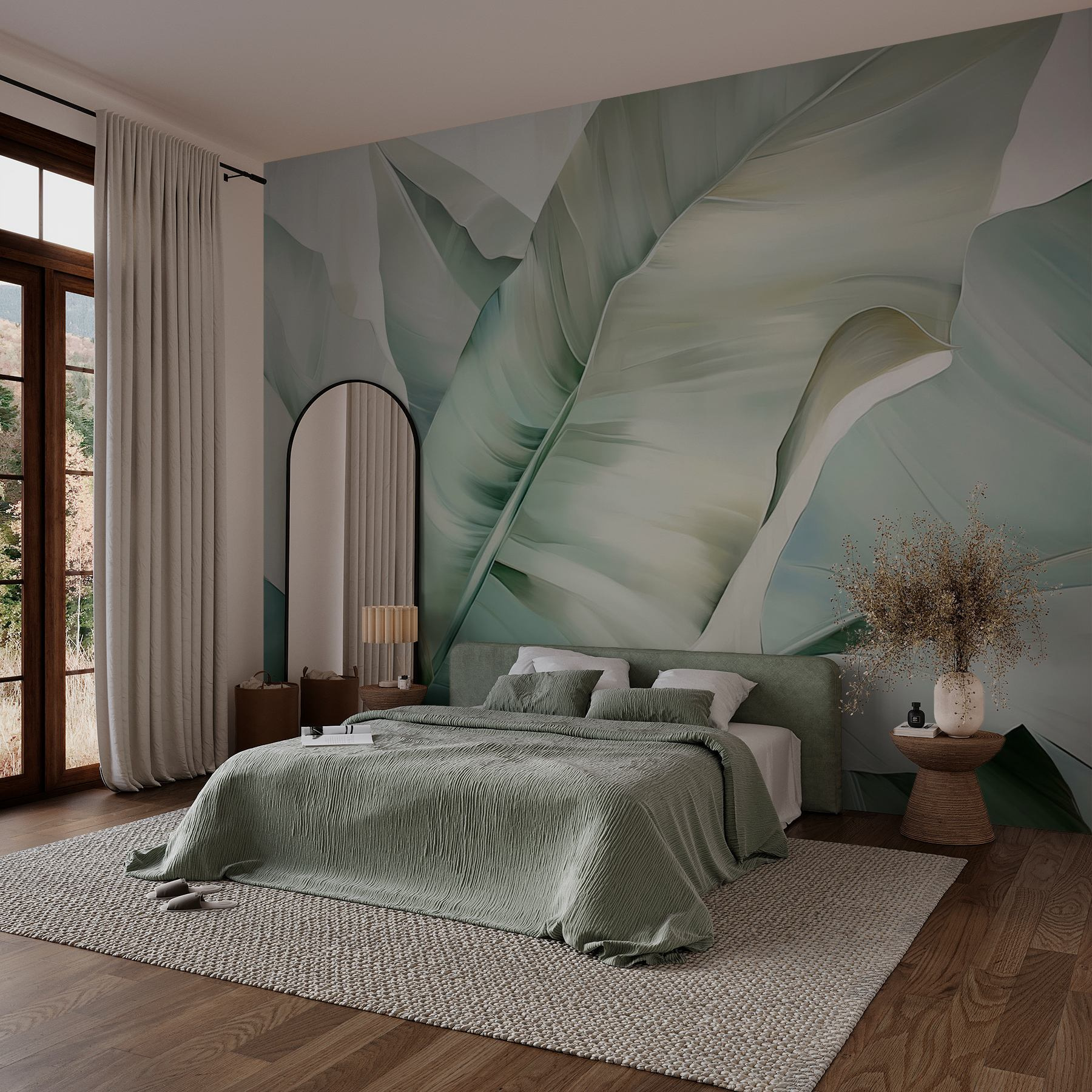Transform any room into a tropical oasis with this mural featuring soft, lush leaves in dreamy hues. Imagine waking up to this serene sight every morning—it’s like bringing a bit of nature inside without the mud or bugs. Perfect for those who crave a touch of the outdoors, it adds a peaceful vibe to kitchens, living rooms, or even that cozy reading nook. Just picture curling up with a cup of coffee, the gentle greens fluttering in your mind like a warm breeze. It’s all about creating that calming escape, right at home!