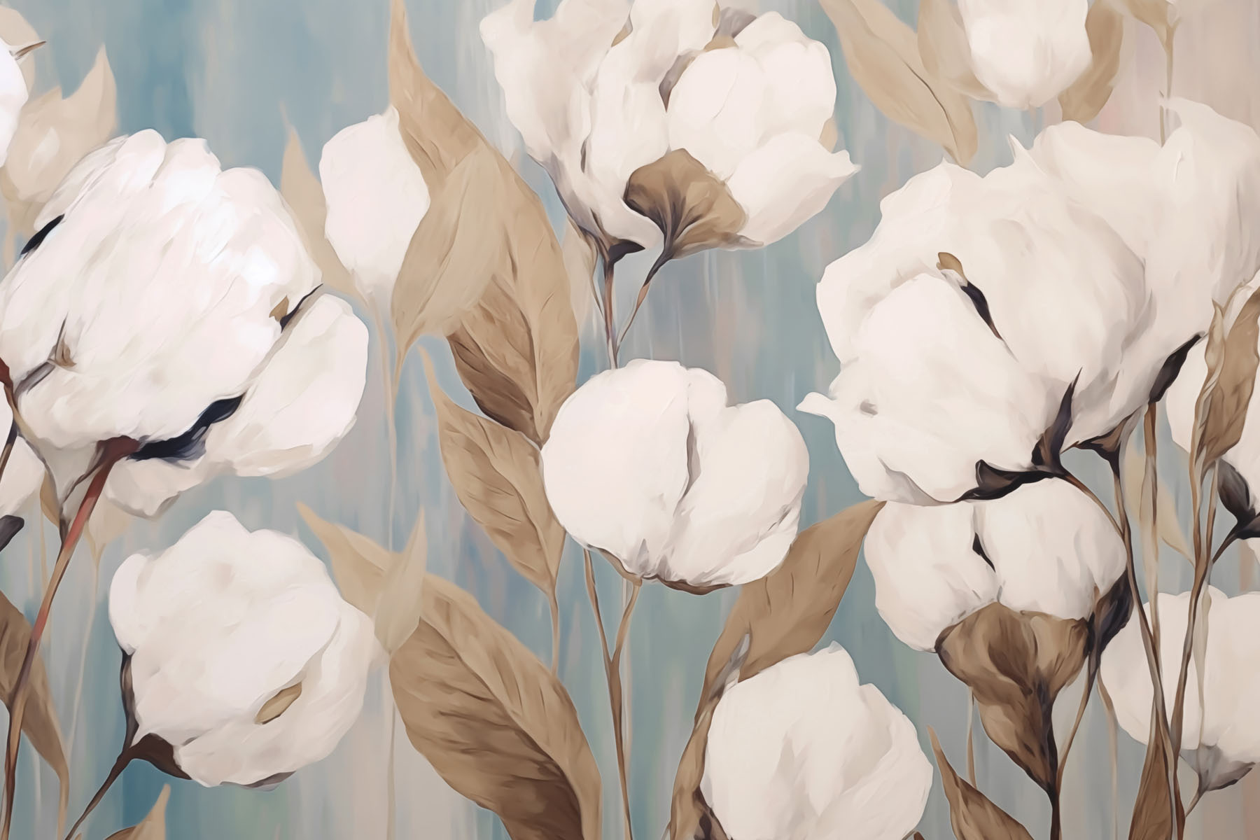 Transform your space with this stunning mural, featuring delicate white flowers and earthy brown leaves. Imagine walking into a room that instantly feels lighter and more welcoming—like an open meadow on a sunny day. These blooms bring a touch of nature indoors, inviting warmth and comfort. Perfect for cozy corners or as a bold statement in a living room, this mural even has a soothing vibe. Just picture sipping tea or coffee, admiring the art, and feeling your worries melt away. It’s like a gentle reminder to pause, breathe, and enjoy the little things. Plus, who doesn’t love a little floral flair?