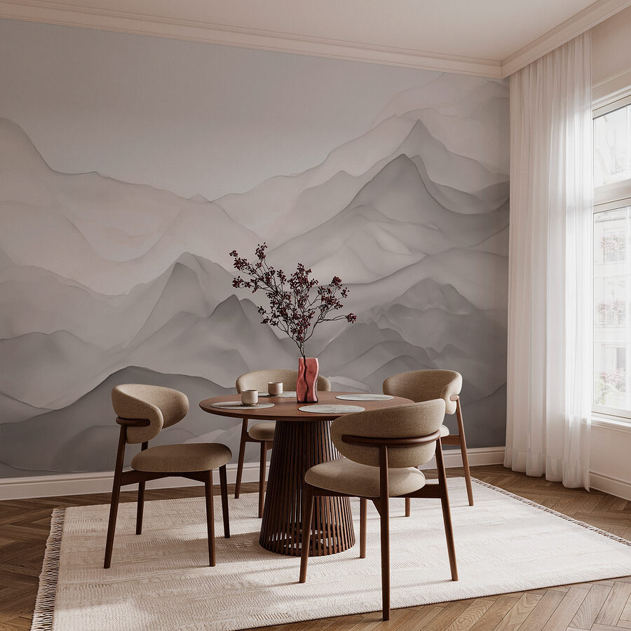 Transforming a wall into a serene escape is as simple as this mural of majestic white mountains. Picture this: gently rolling peaks that create a sense of peace and calm in your space. It’s like bringing a quiet mountain retreat right into your home. Perfect for any room needing a little character, this design mirrors the feeling of wandering through nature, a sweet reminder to take a breath and relax. The soft tones play nice with just about anything, so pair it with vibrant plants or cozy textiles for that ideal inviting atmosphere. Who wouldn’t want to feel like they’re living in a cozy cabin, right?