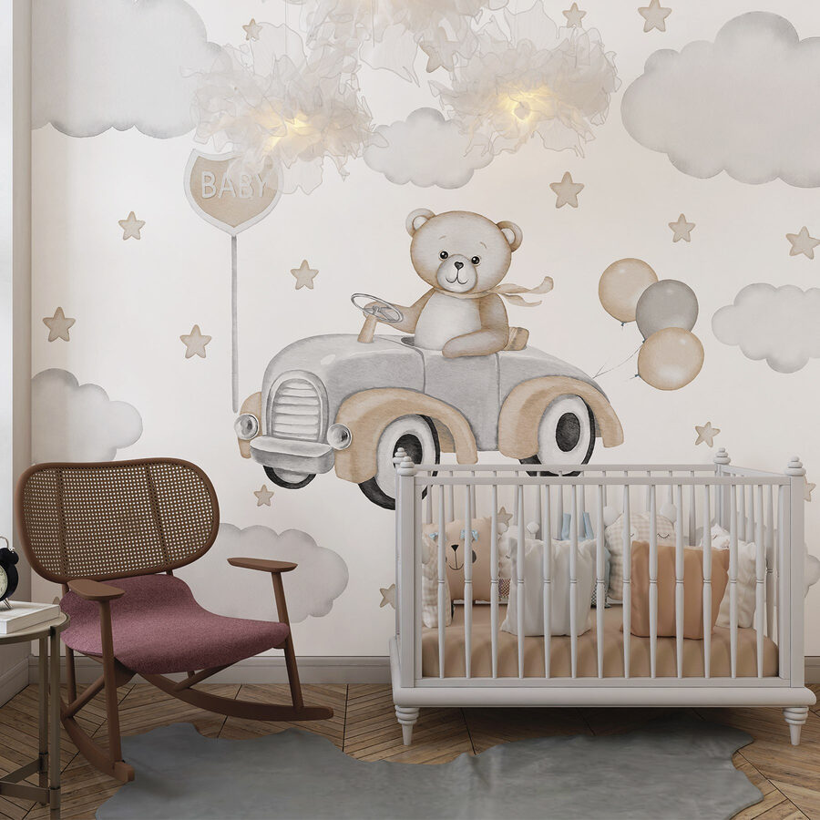 Transform any room into a whimsical wonderland with this adorable mural featuring a teddy bear cruising in a cute car, balloons in tow. Just imagine your little one giggling at this charming sight every day—it’s like a little adventure right on the wall! The soft colors and playful design create a warm, inviting atmosphere perfect for snuggles and storytime. It’s also a sweet reminder that life, like this cuddly bear’s journey, is all about joy and exploration. Plus, who wouldn’t want a wall that sparks smiles and inspires dreams? Perfect for nurseries or kids’ rooms, this mural makes every day feel like a special occasion.