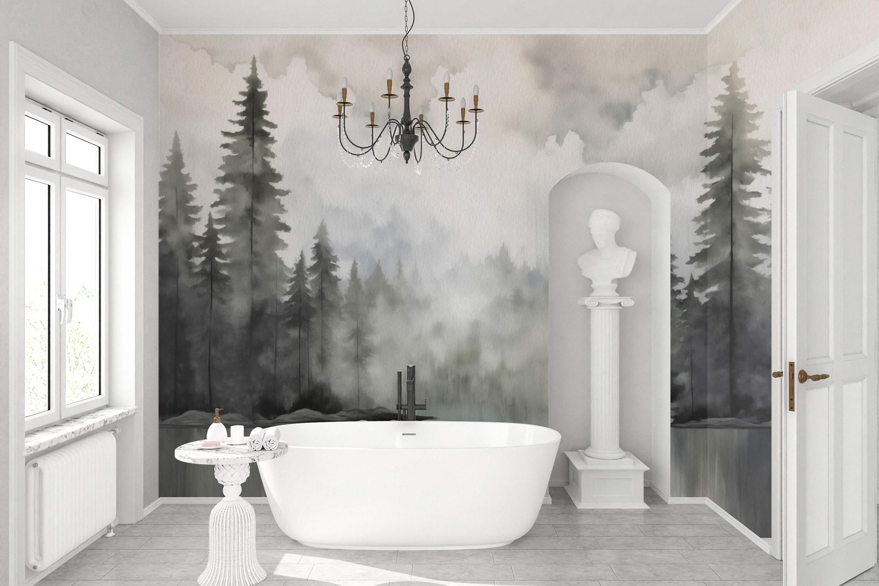 Transform any room into a serene escape with this captivating watercolor mural of a tranquil forest and shimmering lake. It’s like bringing a peaceful slice of nature right inside—perfect for those days when stepping outside seems like a chore. Imagine sipping coffee while gazing at its gentle hues, lingering clouds, and tall pines that whisper tales of adventure. It’s not just wallpaper, it’s a mood! Friends will definitely pause, take a breath, and feel a little lighter in its soothing embrace. A touch of nature, a dash of artistry—what more could one want for a cozy retreat?