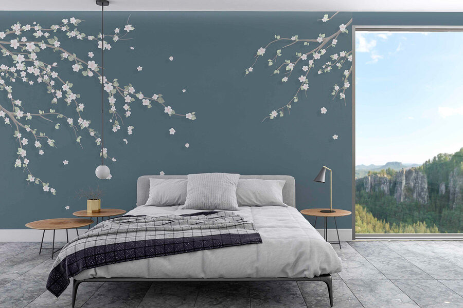 Transform any room into a serene escape with this stunning wall mural of a tree branch adorned with white flowers. Picture it: you wake up, and instead of a plain wall staring back, there’s a whisper of spring right before your eyes. The soft hues dance together, creating a calm vibe that feels like a gentle hug.