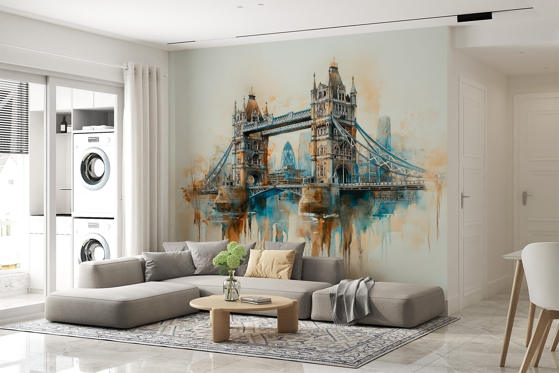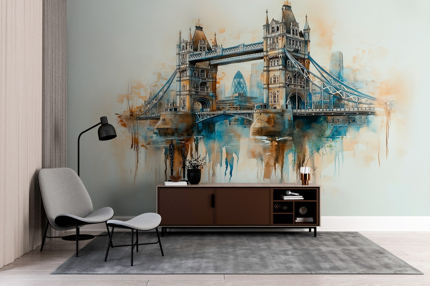 Transform any room into a dreamy escape with this stunning wall mural of a bridge, splashed with watercolors that softly blend together. Imagine gazing at it every morning—it’s like taking a mini-vacation right at home! The gentle hues of blue and warm tones invite calmness, making it perfect for spaces where relaxation is key. Whether it’s gracing your living room or adding charm to a cozy nook, this mural captures the romance of cityscapes. It’s a piece that sparks stories and makes you feel that adventure is just around the corner. Perfect for anyone dreaming of travels or simply looking to spice up their decor!