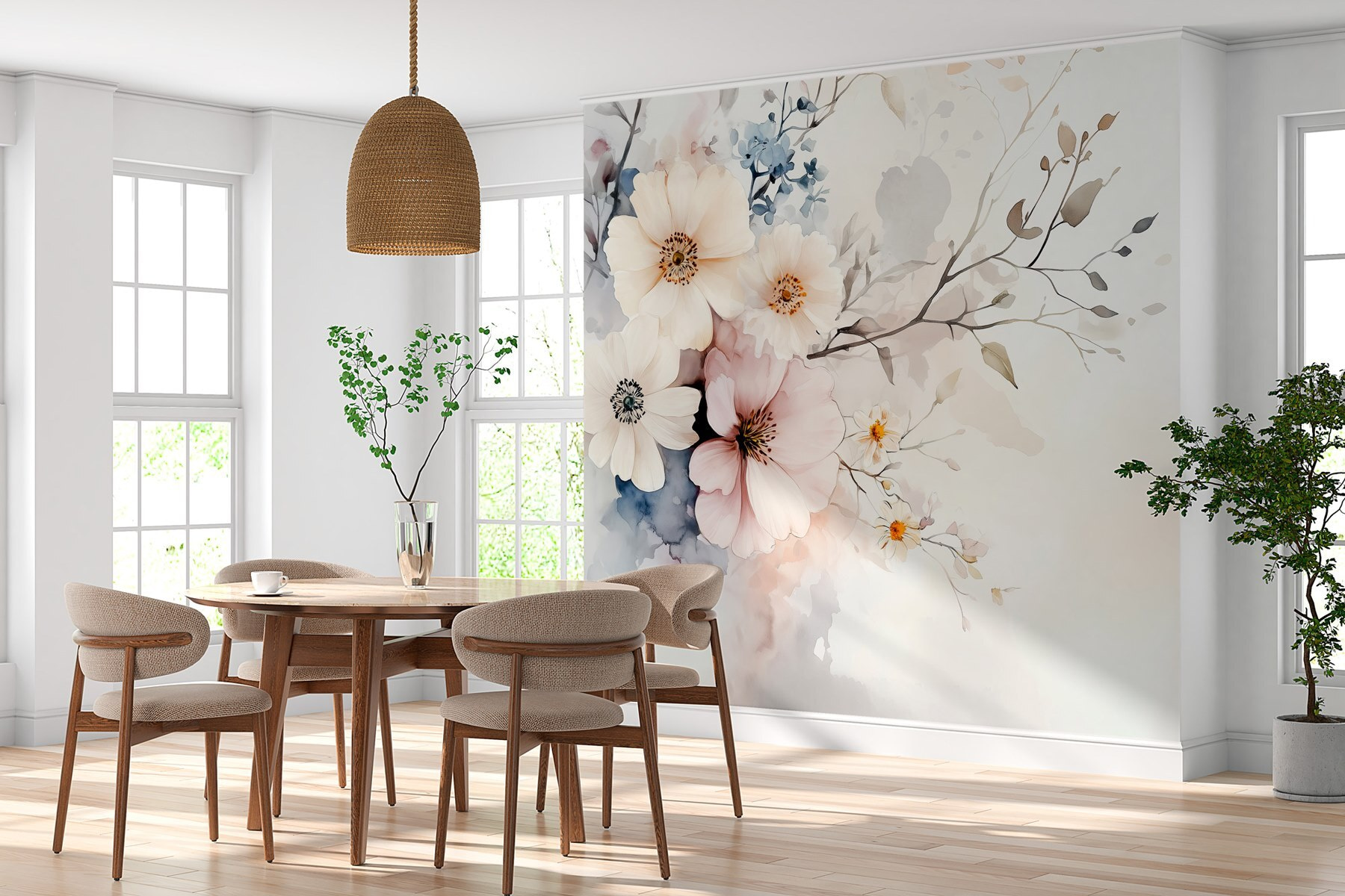 Transform any room with this delightful wall mural featuring soft, watercolor flowers dancing against a white background. Imagine waking up each day to a burst of petals, bringing a splash of nature right into your space. It’s like having a sunny garden at your fingertips, minus the pesky bees! The delicate colors blend harmoniously, creating a tranquil vibe that’s perfect for unwinding after a long day. Whether it’s the living room, bedroom, or even a cozy nook, this mural adds a joyful touch that sparks creativity and warmth. It’s a conversation starter for sure—watch your friends admire it and talk about their own garden dreams!