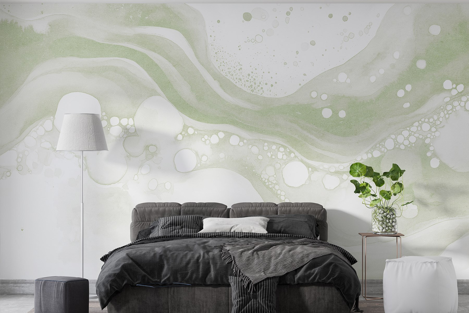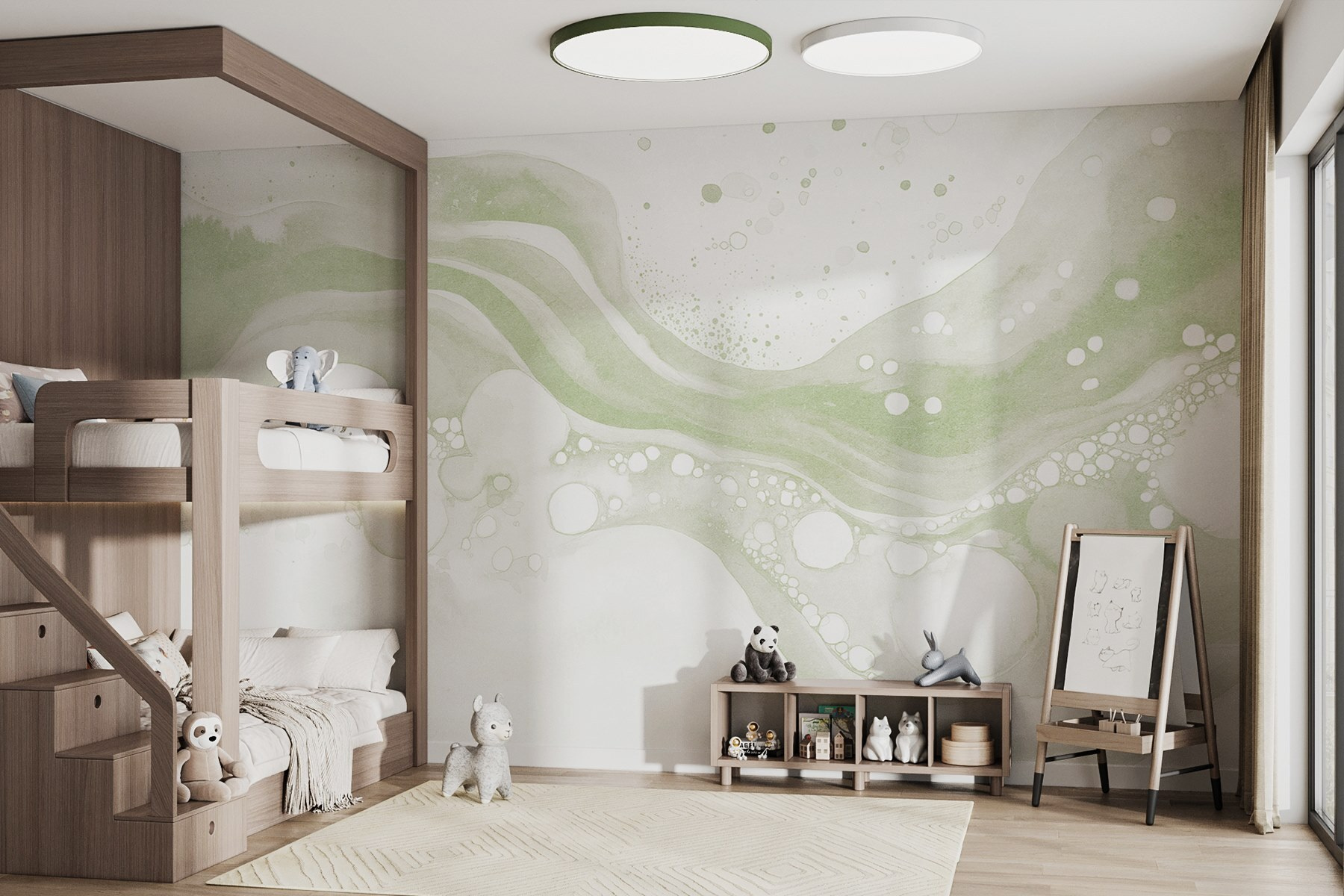 Transforming a space can be as simple as adding this “Wall Murals White and Green Paint.” Imagine walking into a room where calming green swirls and playful bubbles dance across the walls—it’s like having a breath of fresh air right where you live. This mural brings a serene vibe, making it perfect for cozy corners where you unwind with a good book or share laughs with friends. It’s a conversational starter too! Who doesn’t want to discuss the enchanting waves of color? It’s a subtle yet striking way to brighten up a space without overwhelming it. Artsy yet laid-back, this mural is all about creating a chill atmosphere folks will love. Just picture those unique gatherings, with everyone admiring the gentle beauty of the wall, feeling at ease and inspired. Now, that’s a vibe!