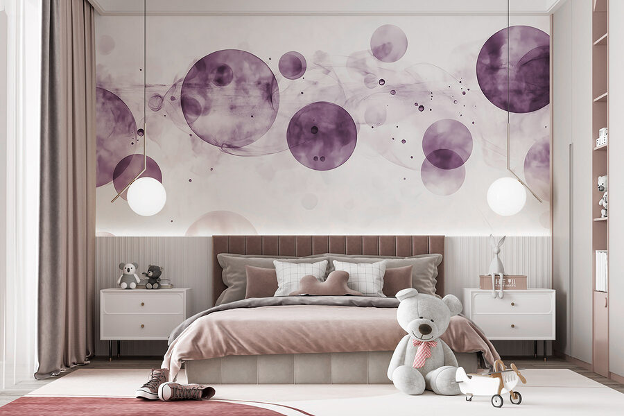 Transform any room with this stunning wall mural featuring dreamy purple circles and soft, whimsical smoke on a clean white background. It’s like a breath of fresh air, effortlessly brightening up spaces. Imagine that moment when a friend walks in and is instantly captivated—like a soft hug for the walls. The gentle hues inspire creativity, making it perfect for a cozy reading nook or a stylish office. Whether you’re sipping coffee or diving into a good book, this mural adds just the right touch of charm and serenity, proving that decor doesn’t have to be loud to make a statement.