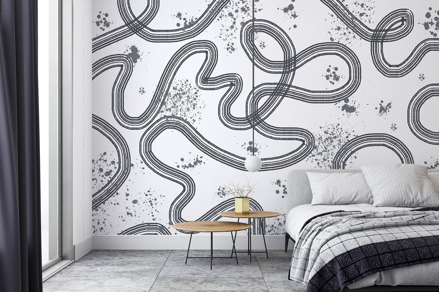 Looking to add a dash of edge to your space? This wall mural featuring a black and white map of a winding race track is just the ticket. The playful curves and unexpected splashes bring an energizing vibe to any room. Imagine stepping into your living area and instantly feeling the thrill of those sharp turns and straightaways. It’s like having a piece of adventure on your wall, sparking conversations and maybe even some nostalgia for that old racetrack game from childhood. Perfect for a home office or a laid-back lounge, this mural adds a unique flair that’s hard to beat.