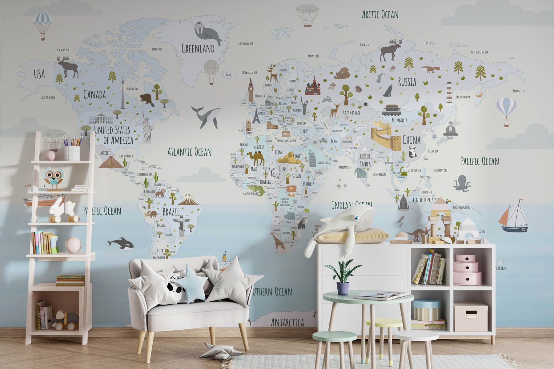 Transform any space into a mini adventure zone with this delightful wall mural featuring a colorful map of the world, adorned with a mix of charming animals. Picture little ones giggling as they discover a panda chilling in China or a friendly whale cruising near the coast of Canada. It’s not just a mural—it’s a ticket to an imaginative world where learning meets fun. Perfect for a nursery or playroom, it invites exploration and conversation. Just imagine family gatherings where everyone gets lost in daydreams of far-off places—what’s not to love?