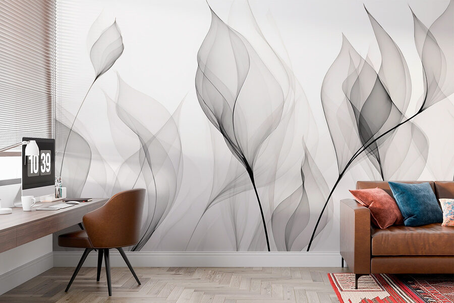 Transform your space with this stunning black-and-white wall mural featuring graceful flowers. Imagine walking into a room where delicate petals dance on the wall, adding a touch of nature’s elegance without the fuss. It’s like having a garden without worrying about watering; perfect for those who might forget what a plant even looks like!