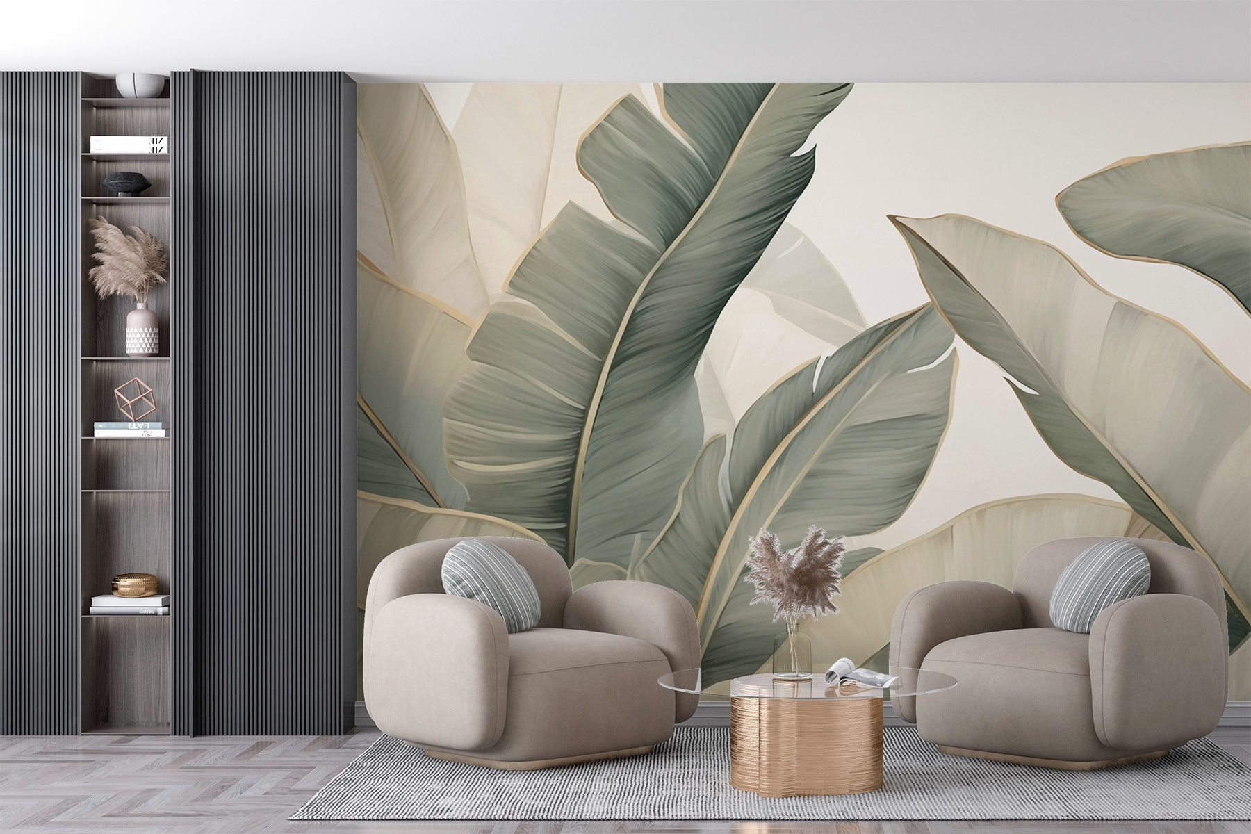 Transform your space with the “Soft Hues of Nature’s Touch” wall mural, where palm leaves sway gently across a subtle backdrop. Imagine stepping into a serene tropical retreat every time you enter the room. The soothing greens invite a sense of calm, making it the perfect backdrop for relaxing evenings or lively gatherings. It’s like bringing a piece of nature indoors, without the pesky insects! Just picture curling up with a book, surrounded by these elegant leaves, while sipping on iced tea. Talk about a vibe! Elevate that wall and watch it breathe new life into your home.