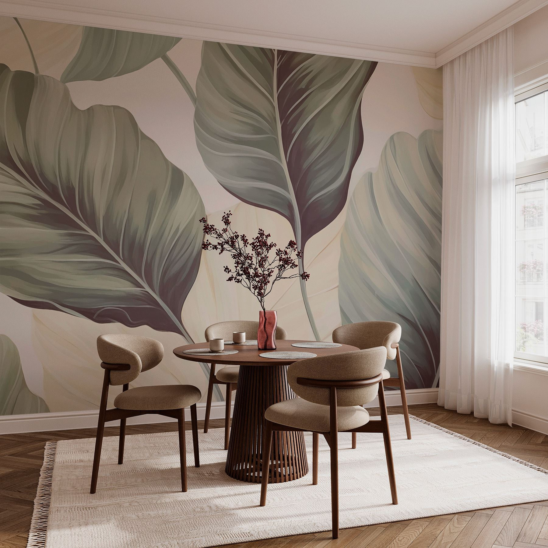 Transform your space into a serene oasis with the “Natural Elegance in Leafy Patterns” mural. Imagine waking up and feeling like you’ve stepped right into a tranquil rainforest. The gentle greens and soft hues of the leaves create a calming ambiance that’s perfect for morning coffee chats or lazy afternoons. Friends will instantly notice—their thoughts will drift to cozy retreats, and they’ll be just a touch envious of your stylish taste. Whether it’s a living room or a quiet nook, this mural wraps your space in warmth and nature’s charm. It’s like bringing the outdoors in, minus the pesky bugs! Feel the shift in energy as soon as it’s up. What a difference a wall can make!