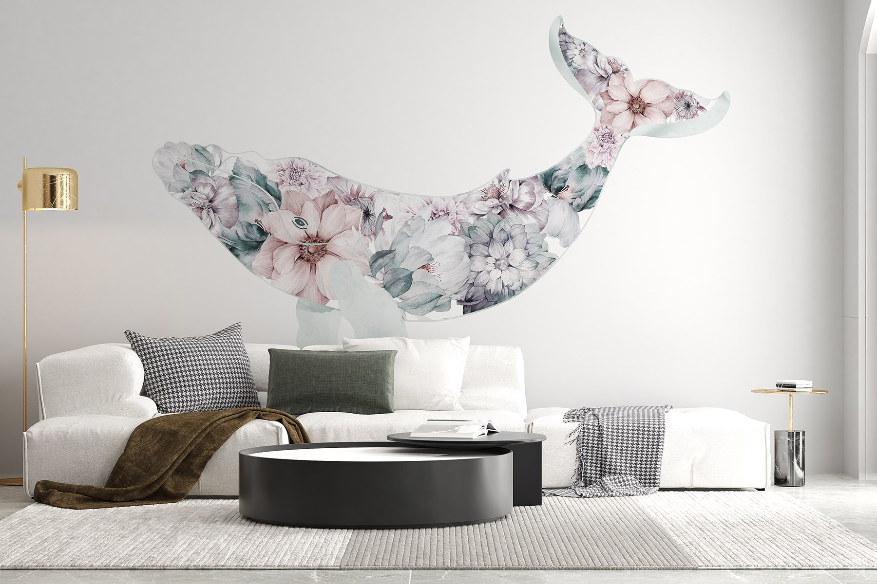 Dive into a sea of tranquility with this whimsical whale wall mural, splashed with delicate flowers that seem to dance along its form. Imagine glancing up and catching sight of this serene creature, bringing a gentle reminder of nature’s beauty right into your home. Perfect for a coastal escape or a calming retreat, this mural stirs up waves of inspiration. Picture it in a child’s room or a cozy reading nook—instantly uplifting the space, sparking joy, and maybe even a little daydreaming. The soft colors blend beautifully, creating an atmosphere that feels alive and welcoming, like a warm hug after a chilly day. Whether you’re a beach lover or simply someone who appreciates the odd charm of a floral whale, this mural adds a touch of magic to any wall.