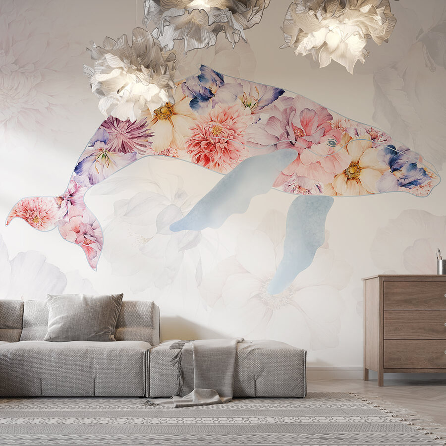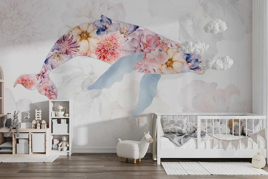 Transform your space with this captivating mural featuring a dolphin surrounded by beautiful flowers. It’s like bringing a touch of the ocean right into your home, where sea meets bloom, creating a delightful harmony. Imagine waking up to this cheerful sight, feeling the gentle wave of calm wash over you. It’s perfect for a beach-themed room, or anywhere that could use a splash of color and tranquility. Friends might even be tempted to dive into your vibrant walls! An easy way to make any space feel more alive and inviting, don’t you think?