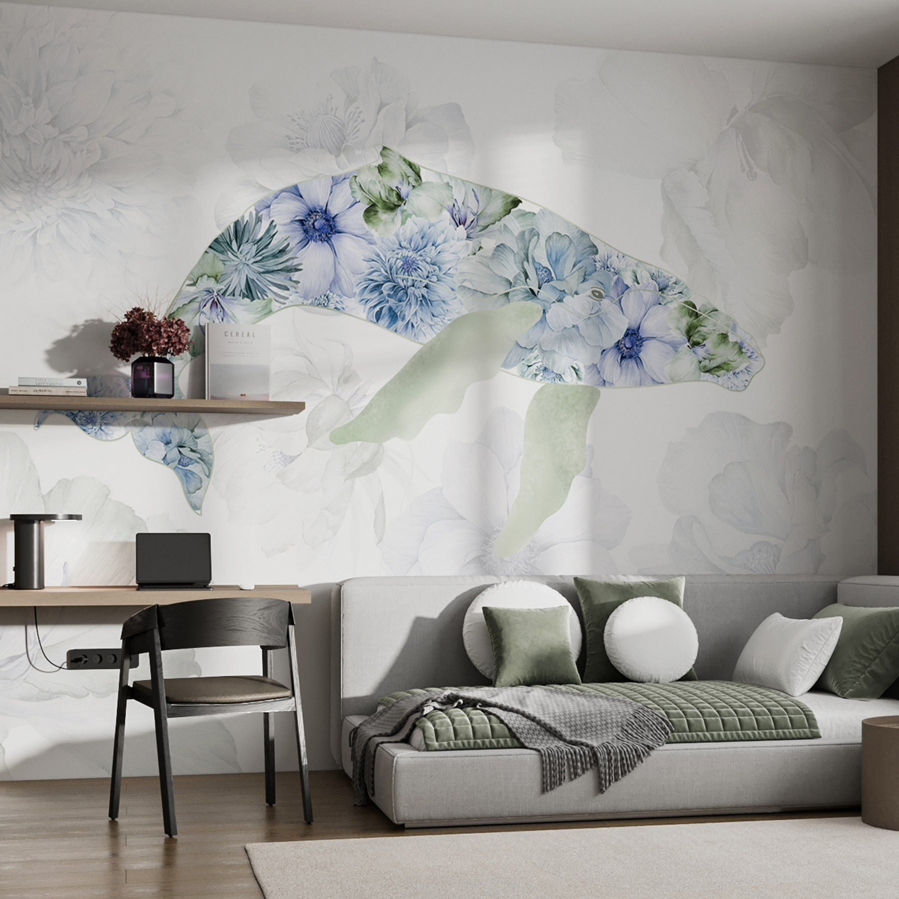 Transform your space with the enchanting “Wall Murals Whale with Flowers.” Imagine a gentle giant, a whale adorned with delicate blooms, gliding through your room like a serene dream. It’s a lovely blend of ocean vibes and floral beauty, perfect for bringing a touch of nature indoors. Picture stepping into a room where tranquility reigns, each glance at those soft petals feels like a mini escape. Friends might even say it’s like having a piece of the sea right at home, minus the wet hair and sand in your shoes. This mural isn’t just decor; it’s a conversation starter and a daily reminder to appreciate the beauty around us. Your walls will never look dull again!