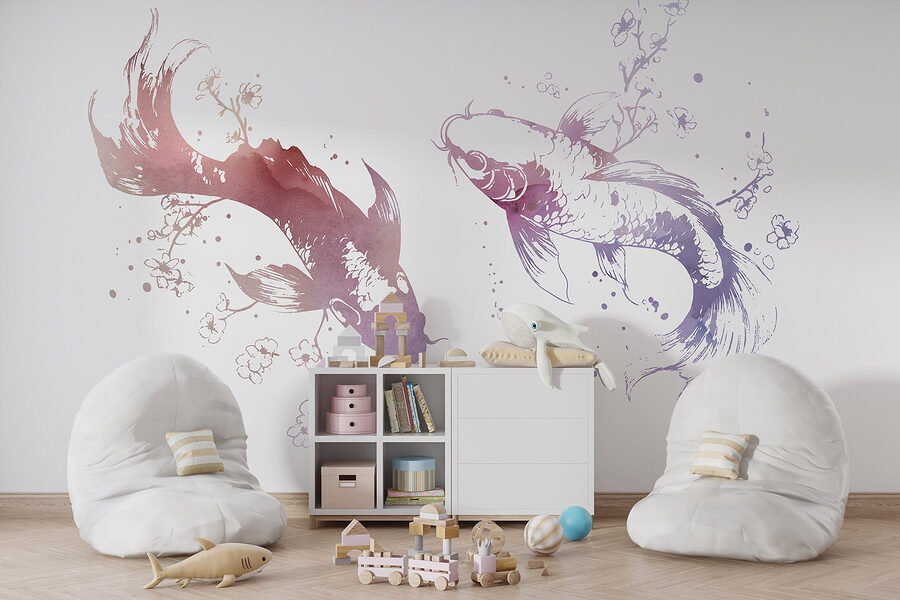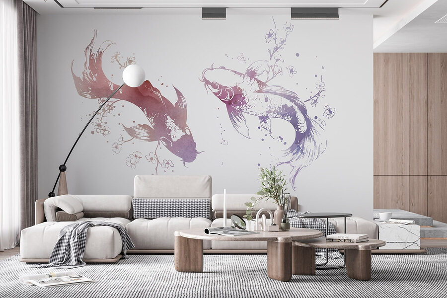 Transform your space with this enchanting mural of two graceful fish amidst blossoms and leaves. Imagine stepping into a serene underwater garden every time you walk into the room. The soft watercolor style adds a gentle touch, and it’s like the sea is whispering sweet nothings right on your wall. Friends might even mistake it for a calming art piece you found at some chic gallery. It’s perfect for creating that laid-back vibe—think sipping tea, catching up with friends, or just dreaming a little. Dive into a world where every glance feels like a peaceful swim through nature’s beauty. Who knew wall art could be so enchanting?