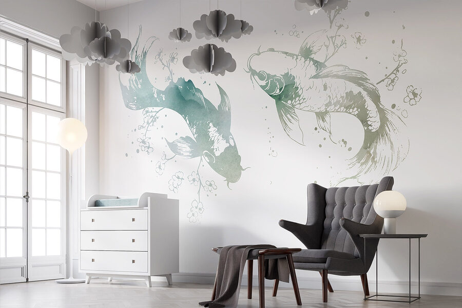 Transform any space with this charming mural featuring two fish playfully gliding amidst delicate flowers and leaves. It’s like a serene underwater garden right on your wall, bringing freshness and a splash of nature indoors. Imagine waking up to this peaceful scene, where color and creativity swim together—talk about starting the day with a smile! Perfect for living rooms or cozy nooks, it adds a touch of whimsy without overpowering the vibe. Plus, it’s one of those pieces that has a story—it whispers relaxation and invites delightful daydreams. Dive into decor that feels alive and inviting!