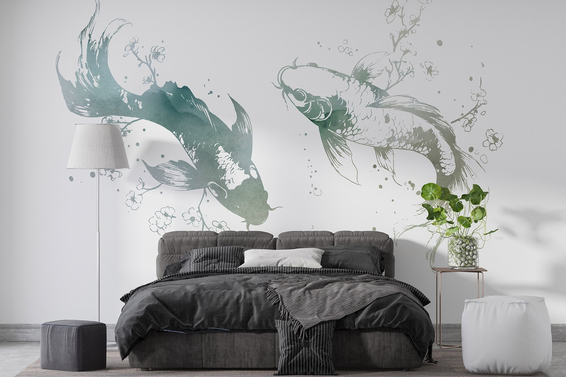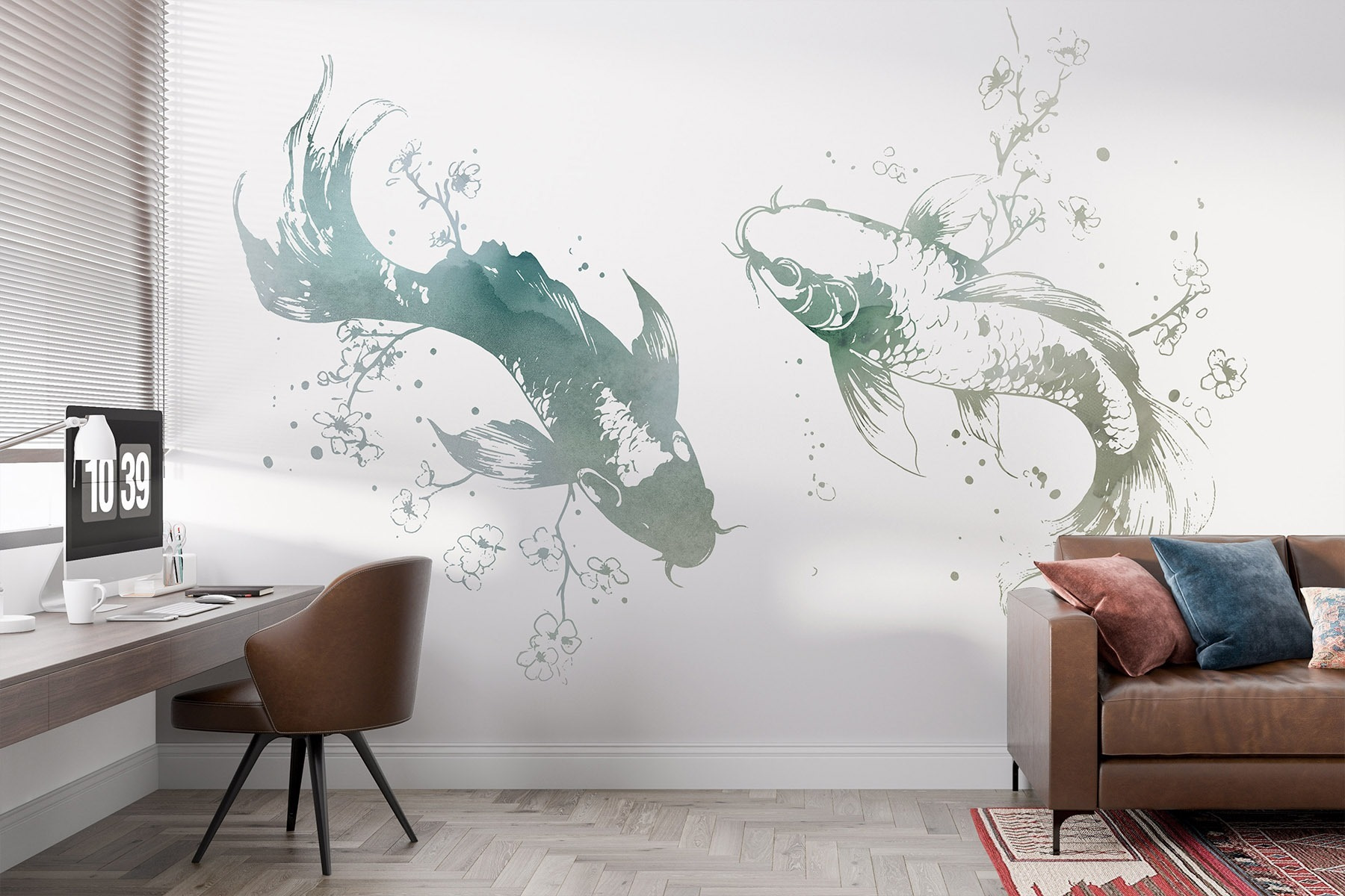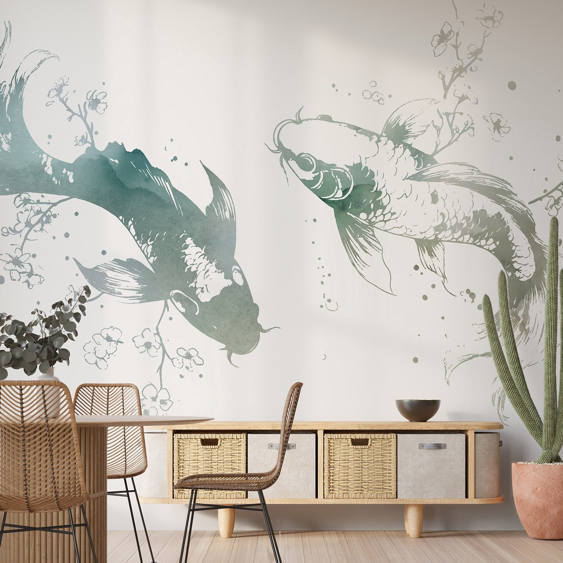 Transform any space with this charming mural featuring two fish playfully gliding amidst delicate flowers and leaves. It’s like a serene underwater garden right on your wall, bringing freshness and a splash of nature indoors. Imagine waking up to this peaceful scene, where color and creativity swim together—talk about starting the day with a smile! Perfect for living rooms or cozy nooks, it adds a touch of whimsy without overpowering the vibe. Plus, it’s one of those pieces that has a story—it whispers relaxation and invites delightful daydreams. Dive into decor that feels alive and inviting!