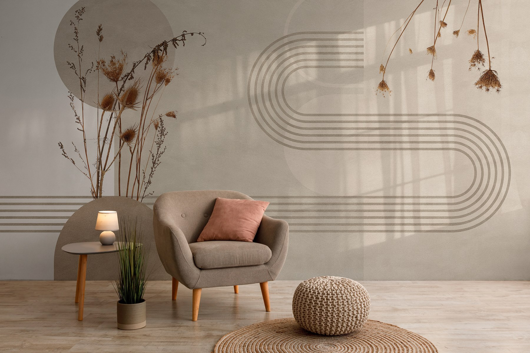 Transform any space with this delightful mural featuring warm brown and white circles, intertwined with delicate plants that seem to dance across the wall. Imagine stepping into a cozy room where the gentle curves and earthy tones wrap around you—like a warm hug on a chilly day. It’s perfect for brightening up a living room or bringing a serene vibe to a bedroom. This mural doesn’t just decorate; it invites you in, sparking little moments of joy as you catch a glimpse of its subtle beauty. It’s the kind of artwork that makes you pause and think, “Ah, this is home.”