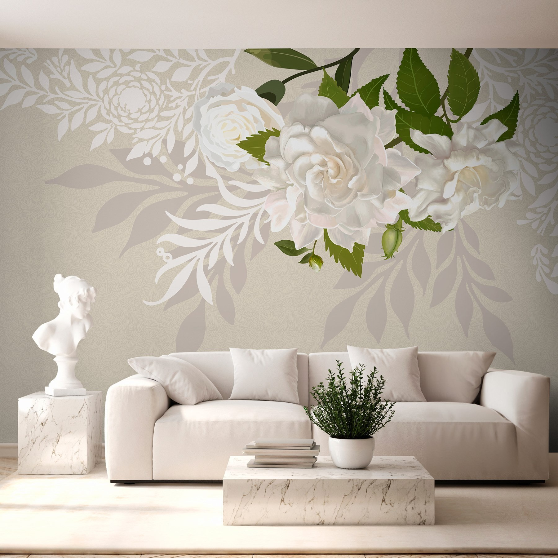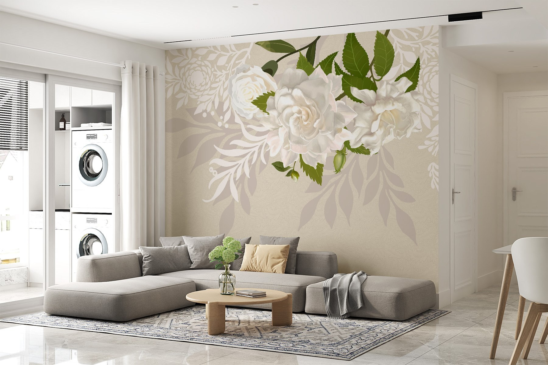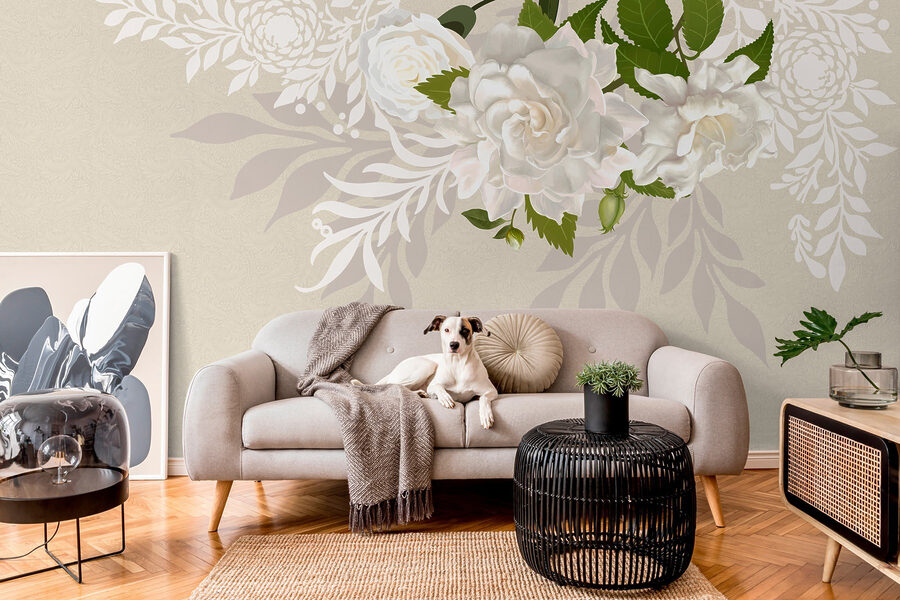 Transform your space with this stunning wall mural featuring white flowers and lush green leaves. It’s like bringing a garden right into your living room, minus the watering can. Imagine walking into your cozy nook, and bam! Instant serenity. The soft colors warm up any wall, making it perfect for a serene bedroom or a bright, welcoming living area.