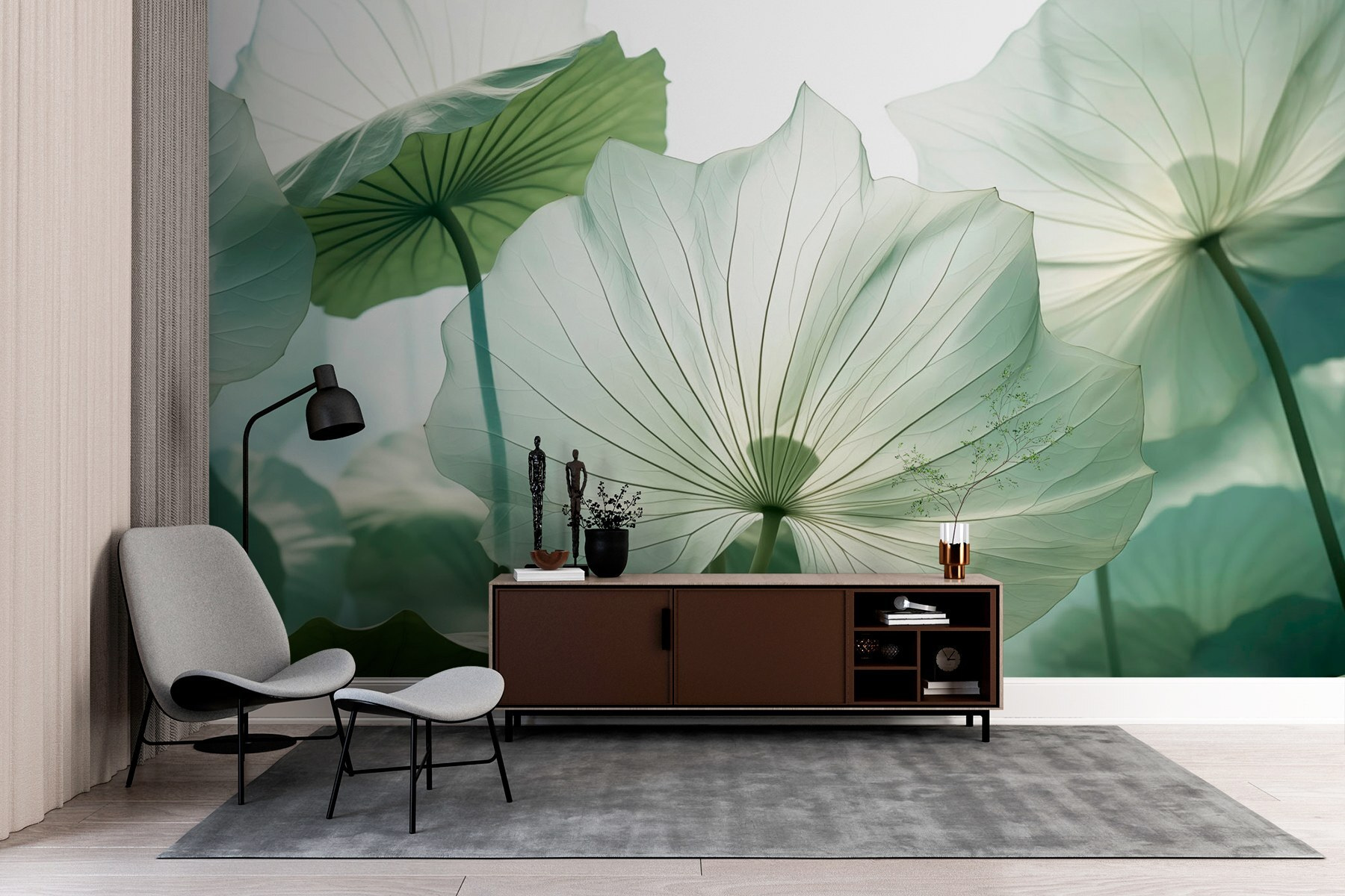 Transform any space with the enchanting “Delicate Leaves in Soft Sunlight” mural. Imagine walking into a room where light dances through large, gentle leaves, casting a warm glow that feels like a cozy afternoon. This mural, with its watercolor vibes, feels like nature decided to take a leisurely stroll right into your home. Whether it’s the living room or a peaceful nook for reading, it adds that perfect touch of tranquility. Picture sipping tea or coffee here, surrounded by soothing greens—ahh, bliss! A delightful conversation starter, this piece invites visitors to linger just a little longer. Why not make your walls sing with this soft, dreamy design?
