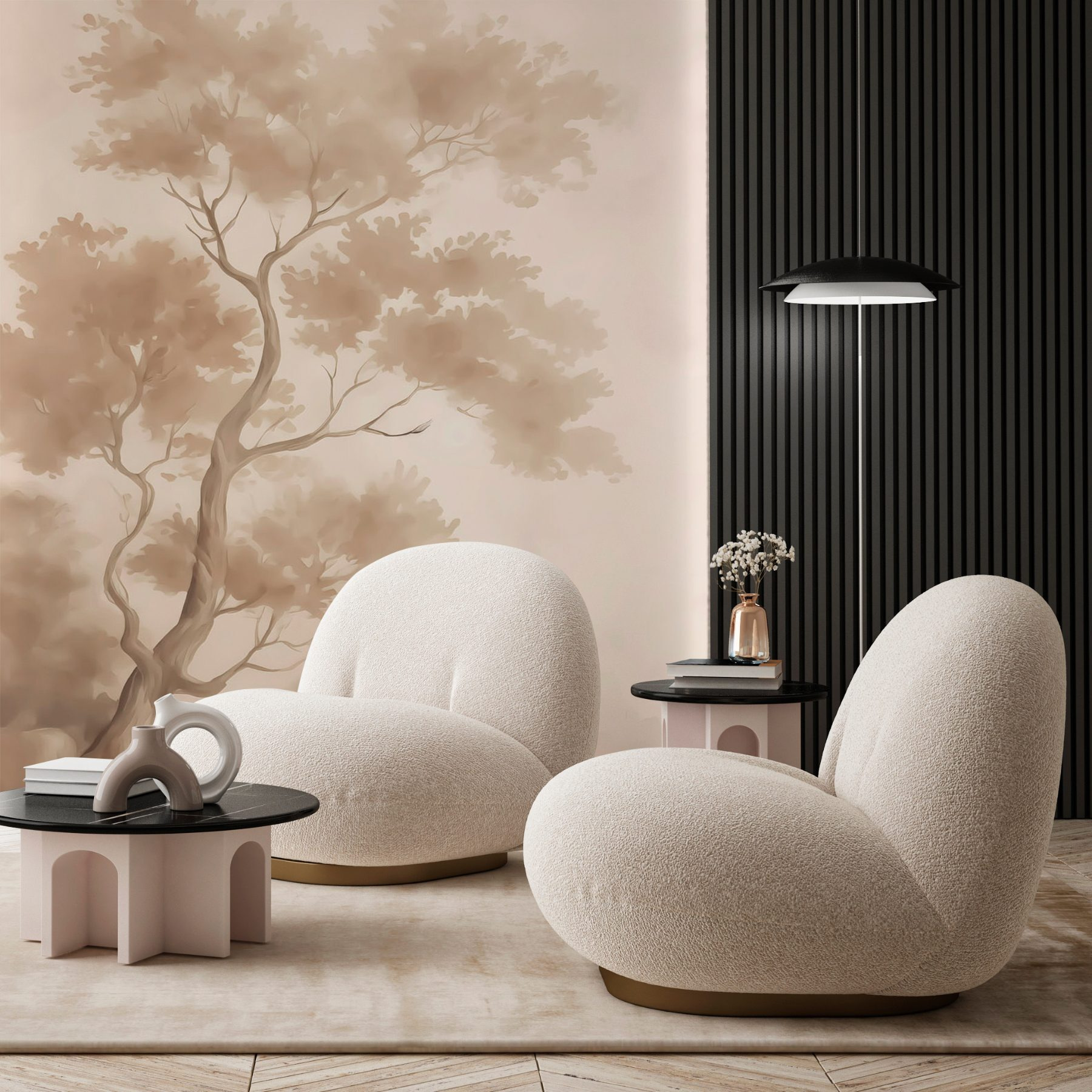 Step into a dreamy world with this enchanting mural of a tree emerging from a gentle fog. It’s like that moment when you stroll through a serene forest, a soft blanket of mist wrapping around your senses. Imagine this scene gracing a living room wall, pulling in light and creating a calm oasis. Guests might find themselves gazing, whispering about the tranquil vibes it brings. Perfect for those who love nature but never want to actually leave the couch! Plus, that subtle woodsy feel? It’s like bringing a piece of the outdoors right into your cozy space. Perfect for daydreaming and sipping tea on a rainy afternoon!