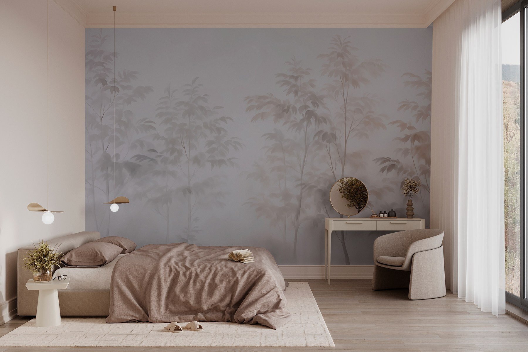 Transform any room into a serene escape with the “Wall Murals Trees in the Fog.” Picture it: soft silhouettes of trees gracefully emerging from a gentle mist, evoking a calm morning stroll in a quiet forest. This mural whispers tranquility, perfect for creating a cozy reading nook or a peaceful bedroom retreat. The subtle hues blend beautifully with various decor styles, so finding a perfect match feels effortless. Imagine sipping your morning coffee while basking in nature’s embrace—talk about a mood booster! This mural doesn’t just fill walls; it invites daydreams and a touch of whimsy, making every glance a little adventure.