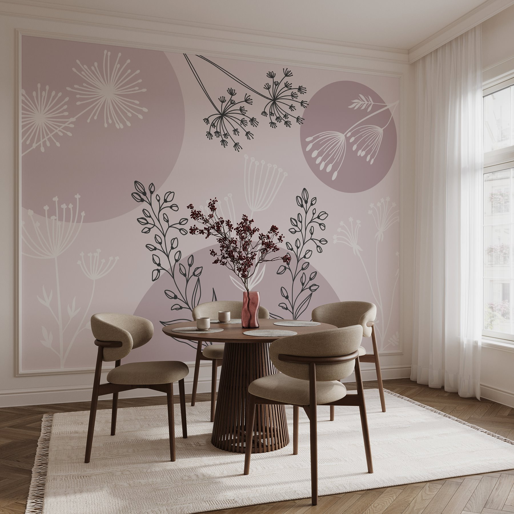 Transform a mundane wall into a blooming paradise with this delightful mural featuring whimsical flowers and lush plants. Imagine walking into a room that feels like a serene garden retreat—no gardening gloves required! The soft watercolor hues dance playfully across the surface, inviting anyone who enters to pause and breathe deeply. It’s the kind of backdrop that makes even Monday mornings feel a bit brighter. Perfect for any space longing for a touch of nature, this mural effortlessly conveys warmth and calm, helping to create that cozy vibe everyone craves. Add a touch of nature to your home without the need for a green thumb!