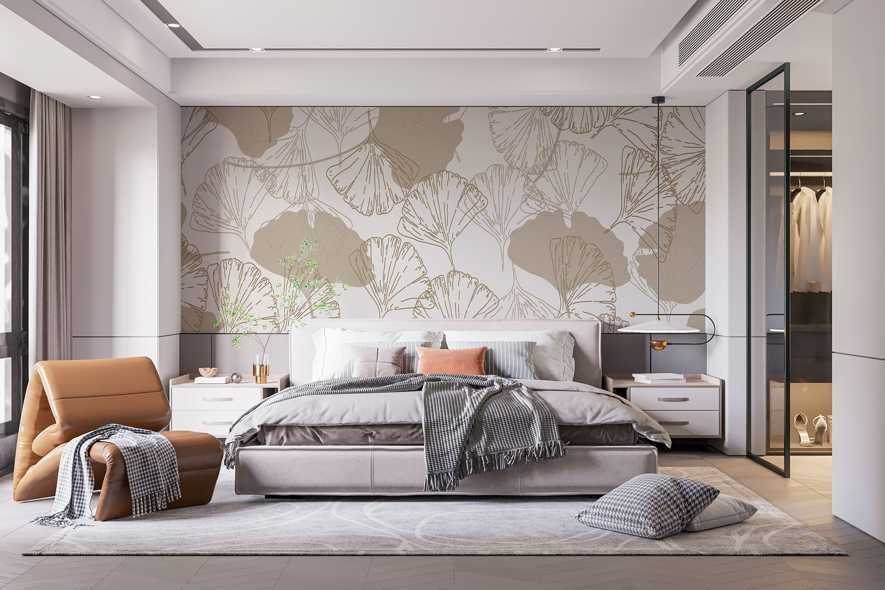 Transform your space with this delightful wall mural featuring a charming pattern of leaves on a soft white background. It’s like bringing a serene garden right into your home, minus the watering can. Imagine lounging on your sofa, sipping tea, and feeling as if you’re tucked away in a peaceful forest. The gentle hues and delicate design can make any room feel fresh and inviting, perfect for those cozy moments or when entertaining friends. Each glance at this mural might just spark a smile or a daydream about sunlit strolls outdoors. It’s not just decor; it’s a little slice of nature indoors—a joy for both eyes and spirit.