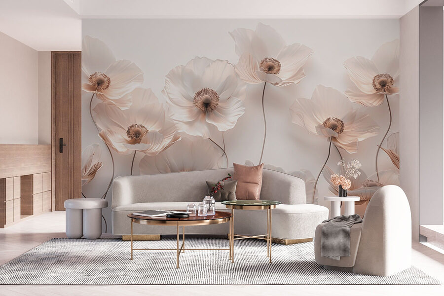 Looking to bring a breath of fresh air into your space? This mural, featuring a stunning group of white flowers, does just that. Imagine stepping into your room and feeling like you’ve wandered into a serene garden. Those elegant blooms practically invite you to stop and smell the roses—well, sort of! They bring a soft, tranquil vibe, perfect for a cozy reading nook or a relaxing bedroom retreat. The gentle shapes and subtle tones create a calming atmosphere, making it easier to unwind after a long day. It’s like having your own little piece of nature, no green thumb required. Plus, who doesn’t love a wall that’s just as easy on the eyes as it is on the heart?