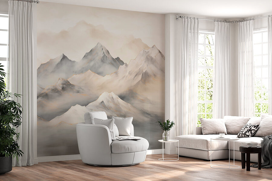 Transform any room into a serene escape with this stunning mural of mountains dancing with clouds. It’s like bringing the great outdoors right into your home—without the cold wind or pesky bugs. Imagine waking up to these majestic peaks, mist lazily hovering around them, whispering calm vibes. Perfect for a cozy living room or a contemplative nook, this watercolor beauty brings a touch of nature’s charm inside. Friends might wander in and say, ‘Wow, when did you go mountain climbing?’—only to chuckle when you share the secret! This mural invites peaceful thoughts and daydreams, reminding you of adventures yet to come.