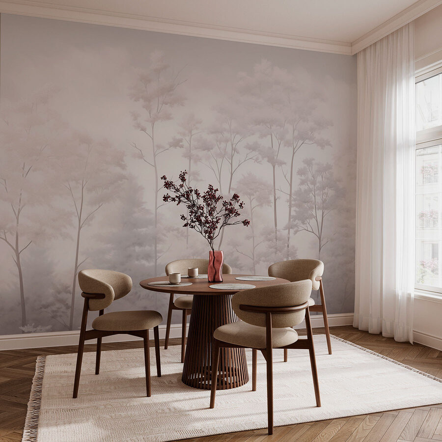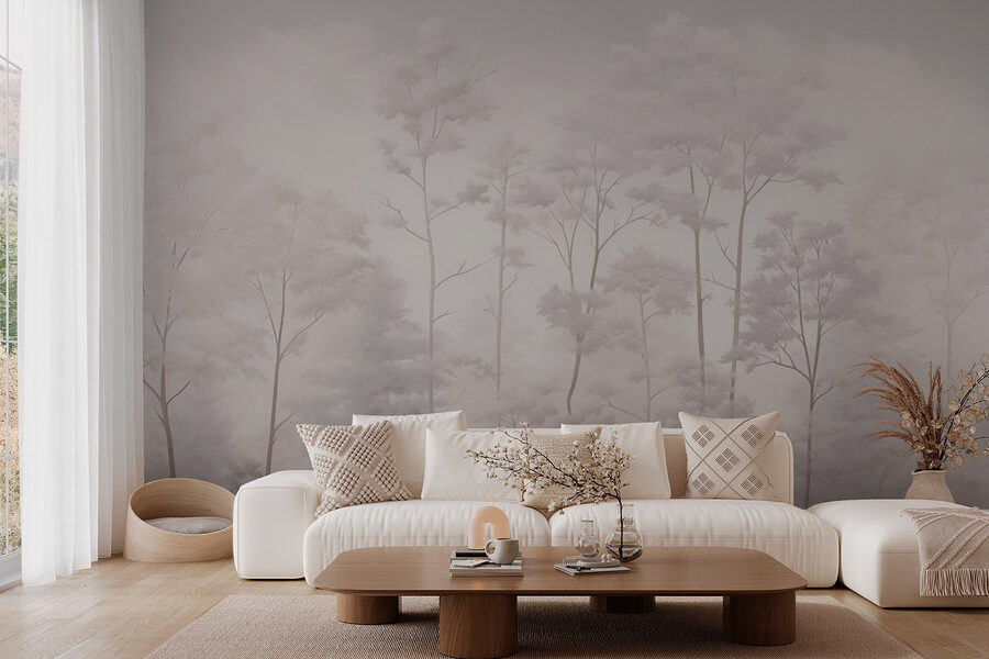 Transform your space with this enchanting wall mural featuring a serene group of trees peeking through soft fog. It’s like stepping into a dream! Imagine sipping coffee while the calming shades of nature wrap around your room. This design whispers tranquility, perfect for creating a cozy reading nook or a zen atmosphere in your living area. It’s a gentle reminder of peaceful forest strolls, even if your only hike is to the fridge. Plus, the subtle hues blend seamlessly with just about any decor. Get ready for some serious compliments!